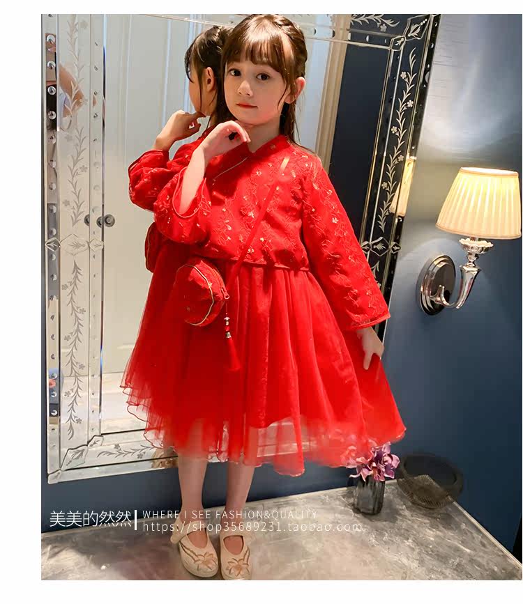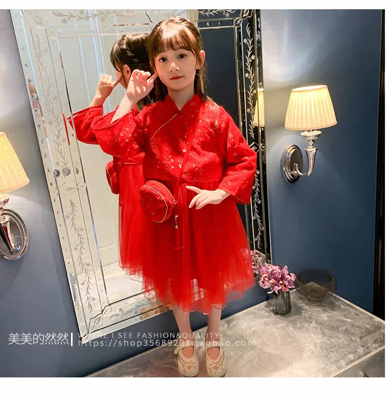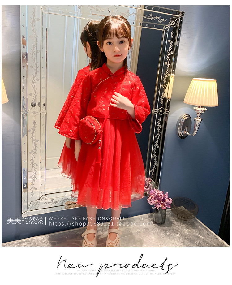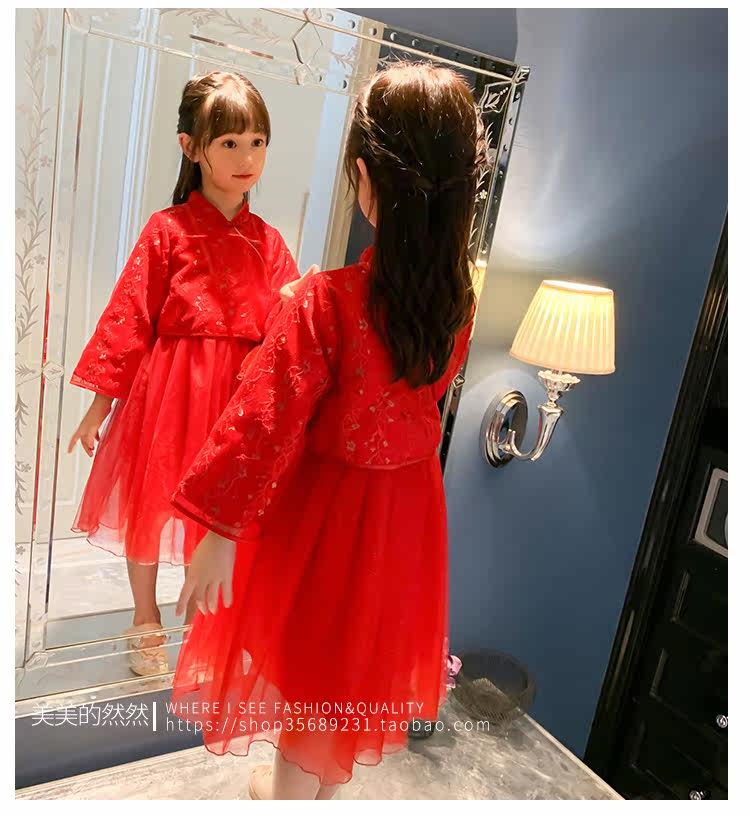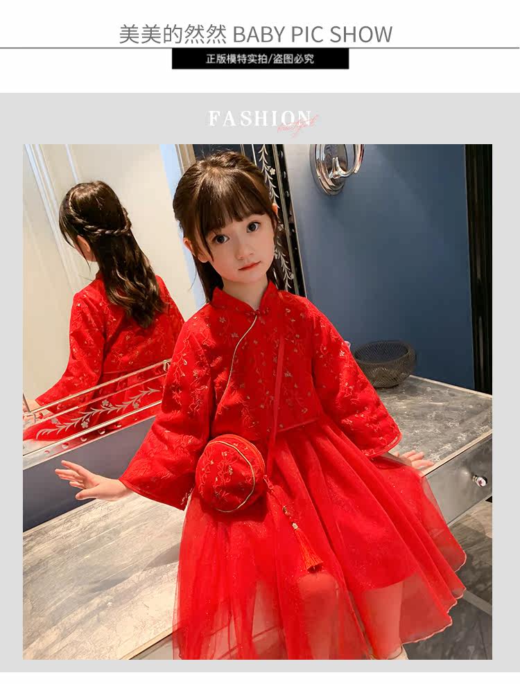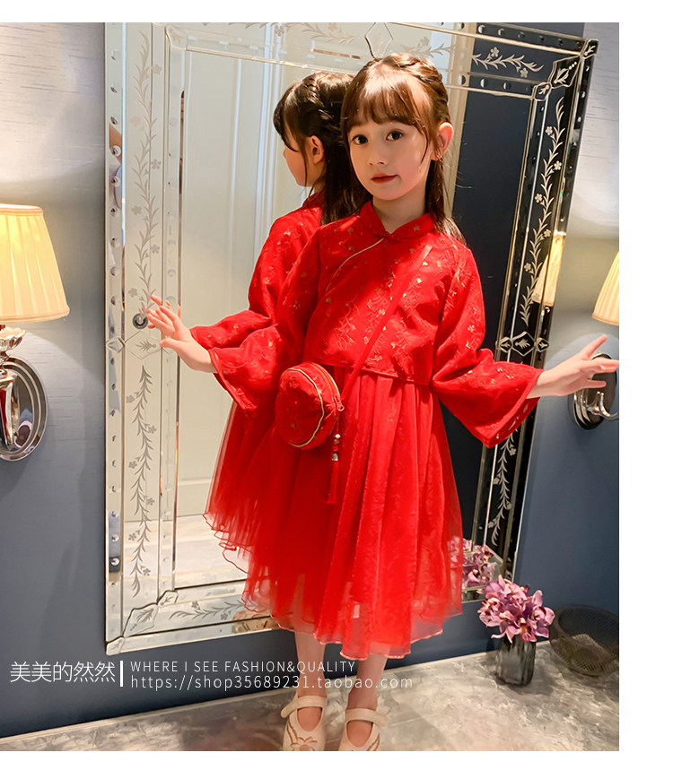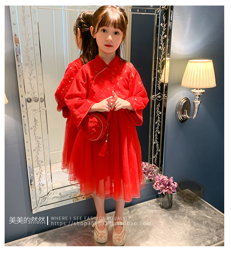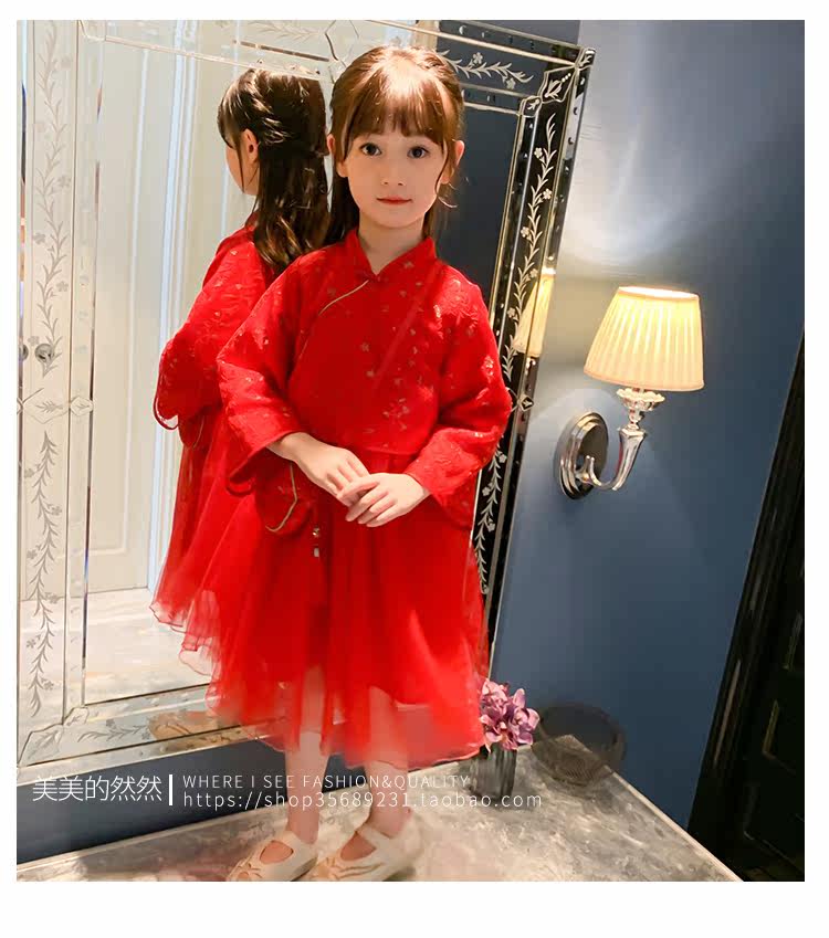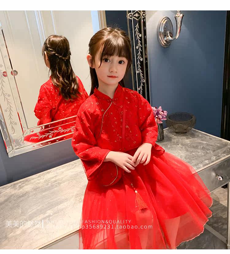 Осеннее ханьфу, красный детский лонгслив, коллекция 2021, китайский стиль, с вышивкой