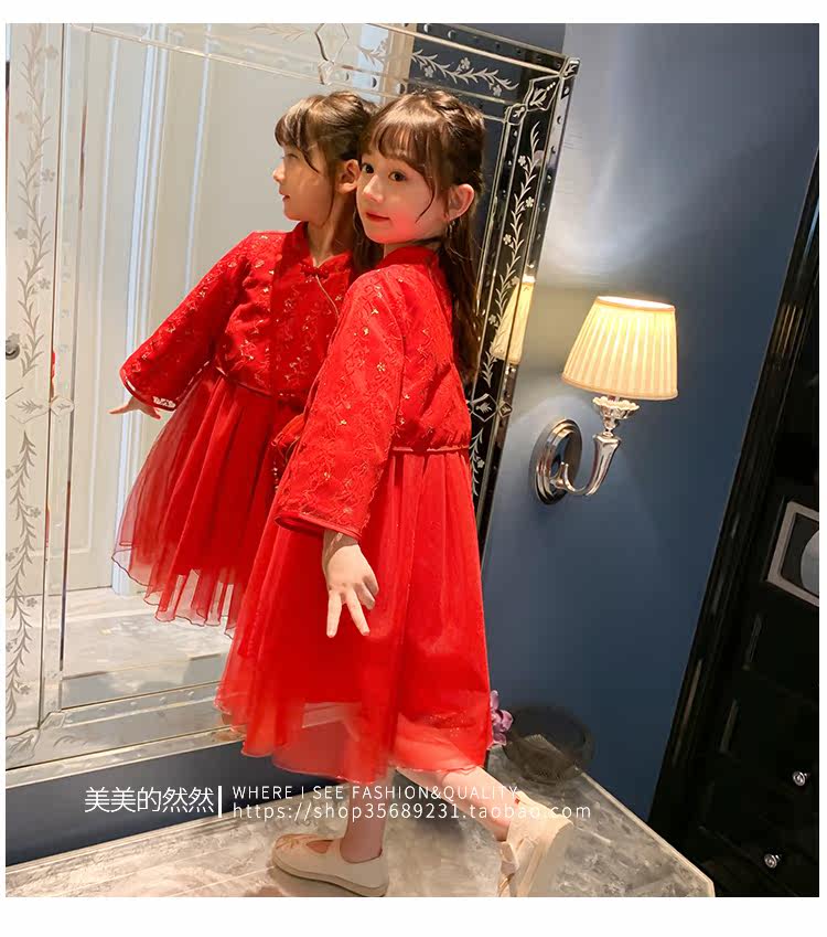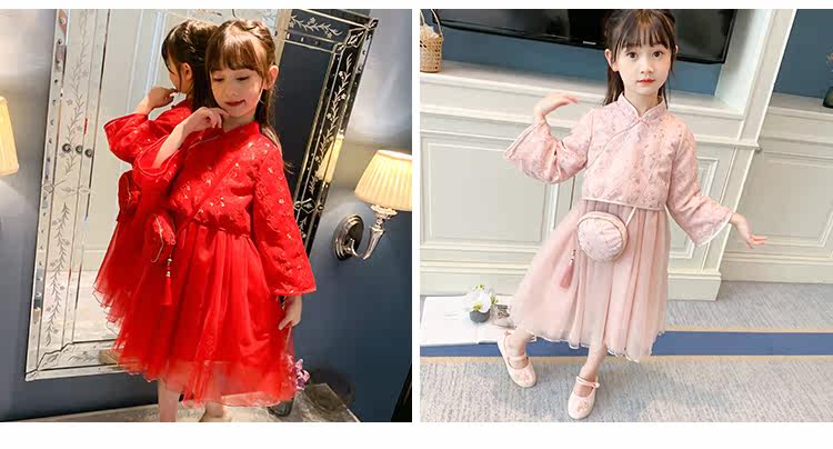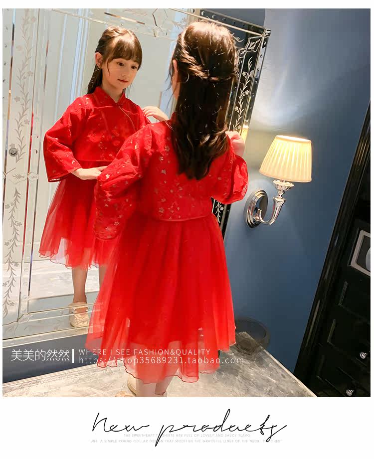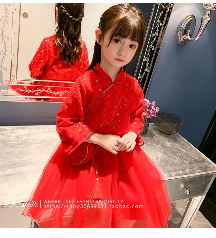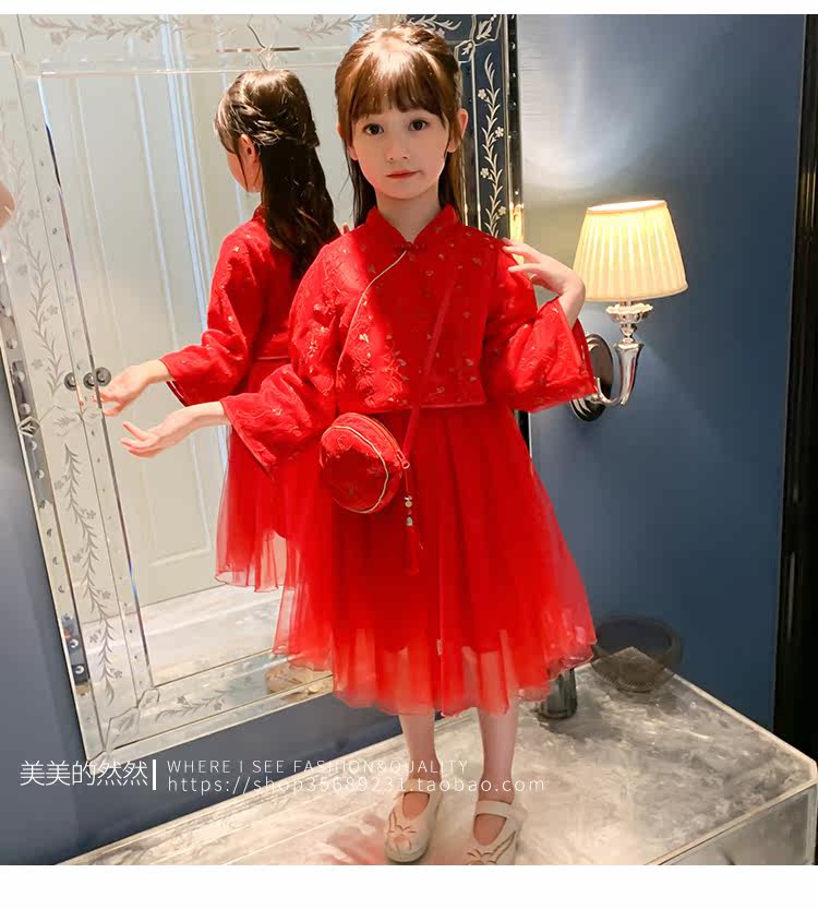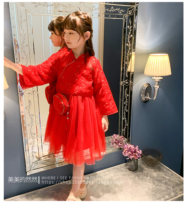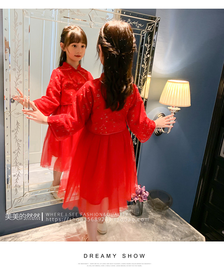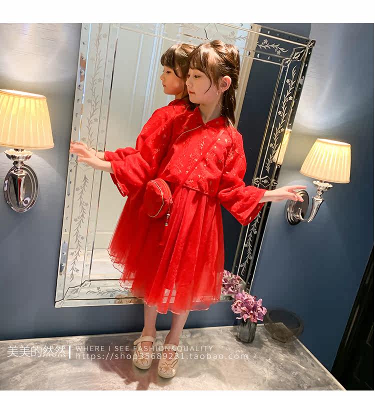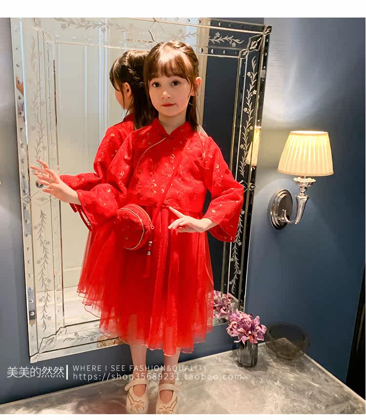 Осеннее ханьфу, красный детский лонгслив, коллекция 2021, китайский стиль, с вышивкой