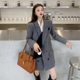 Сексуальный осенний пиджак классического кроя, длинный комплект, лонгслив, оверсайз, средней длины