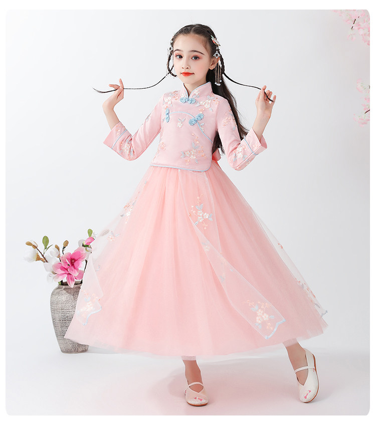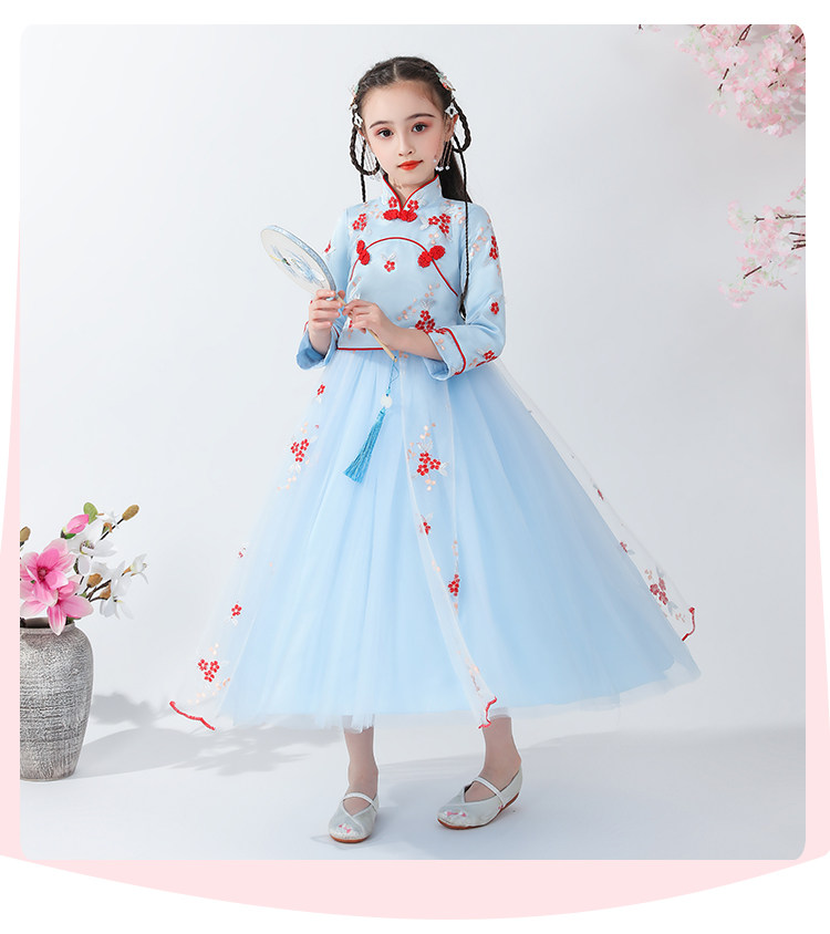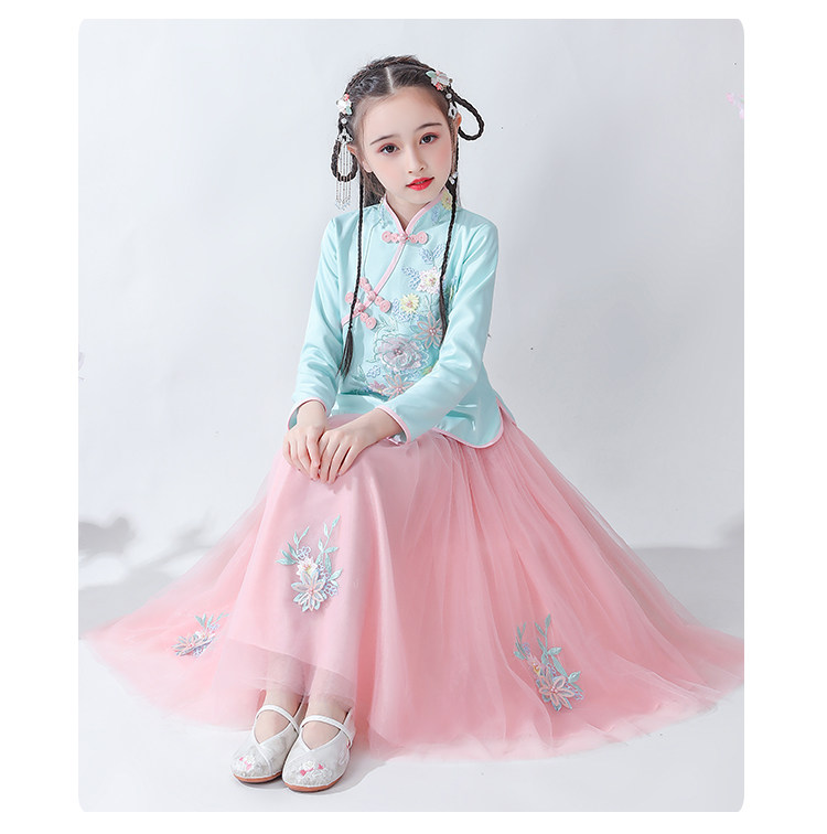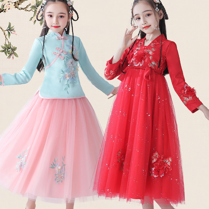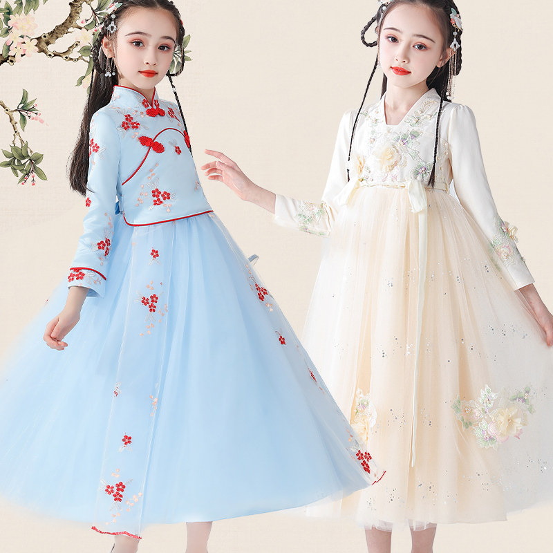 Платье, ципао, лонгслив, детское ханьфу, наряд маленькой принцессы, подходит для подростков, в западном стиле, китайский стиль