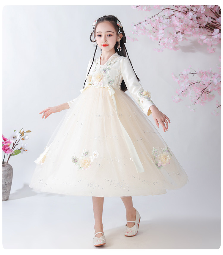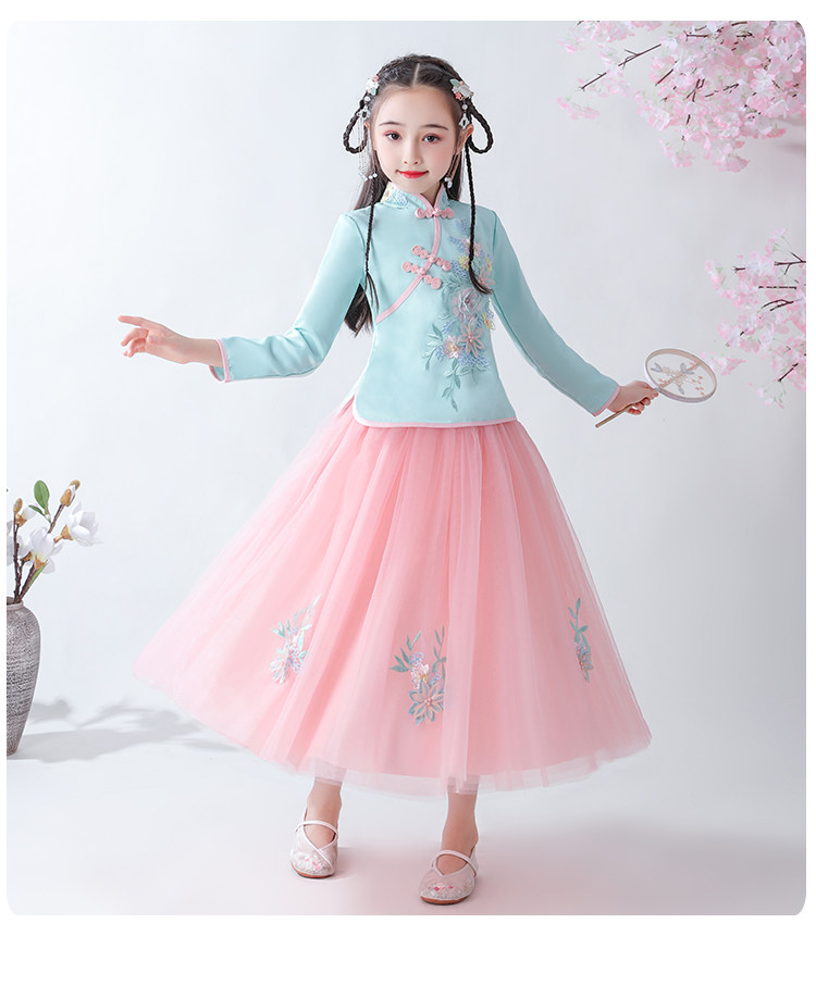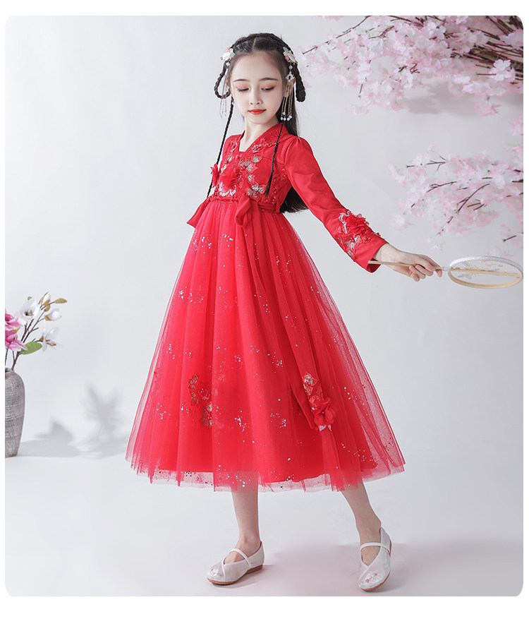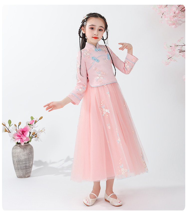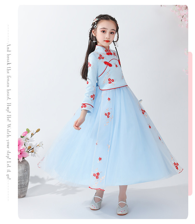 Платье, ципао, лонгслив, детское ханьфу, наряд маленькой принцессы, подходит для подростков, в западном стиле, китайский стиль