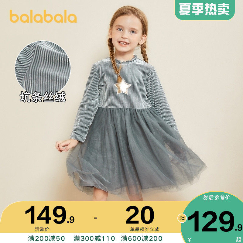 巴拉巴拉 Флисовое платье, детская юбка, бархатный наряд маленькой принцессы, демисезонный пуховик