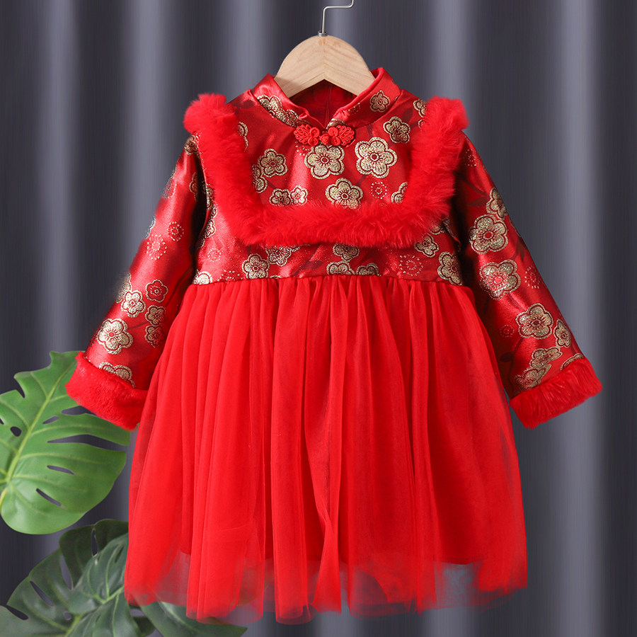 Демисезонный флисовый пуховик, детский наряд маленькой принцессы, ханьфу, китайский стиль