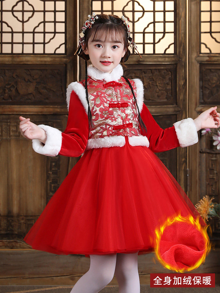 Красное детское зимнее платье, флисовое ханьфу, зимняя юбка