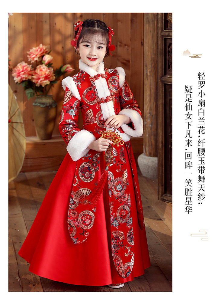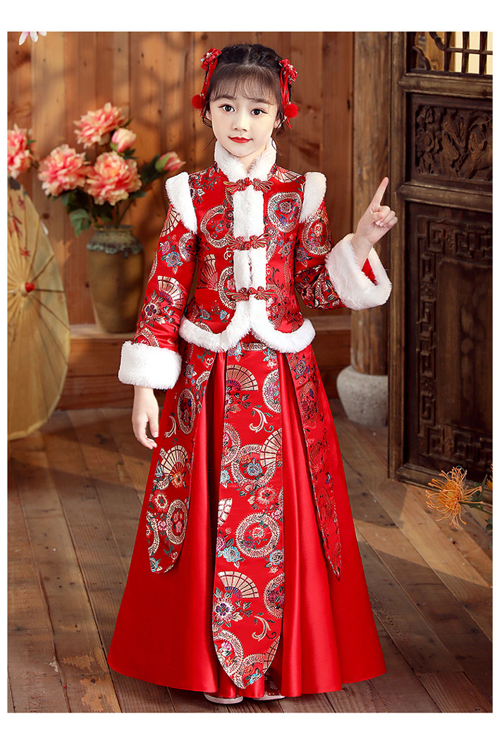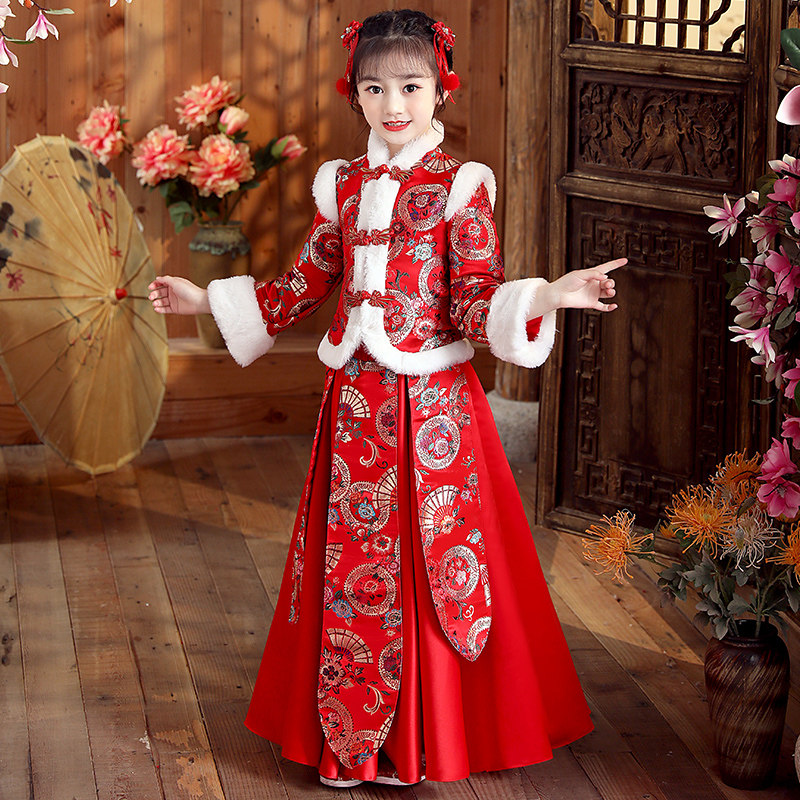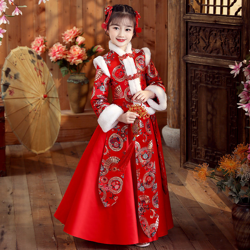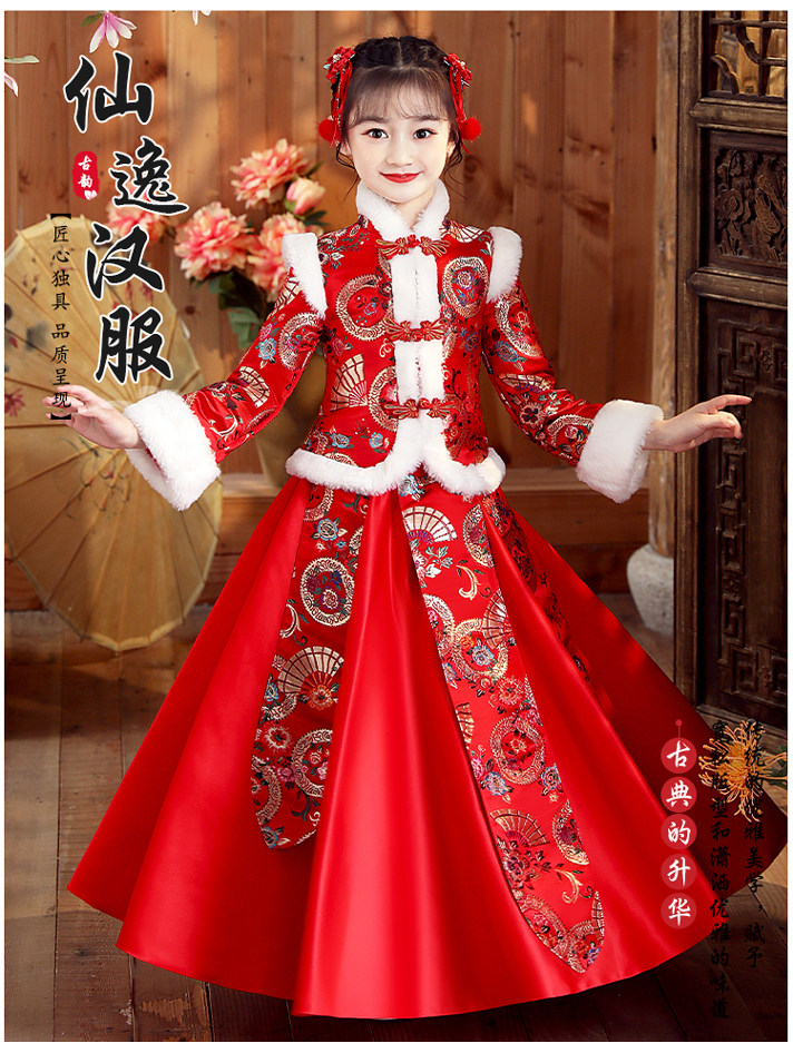 Ханьфу, свадебное платье, красный демисезонный детский пуховик, флисовый наряд маленькой принцессы, детская одежда