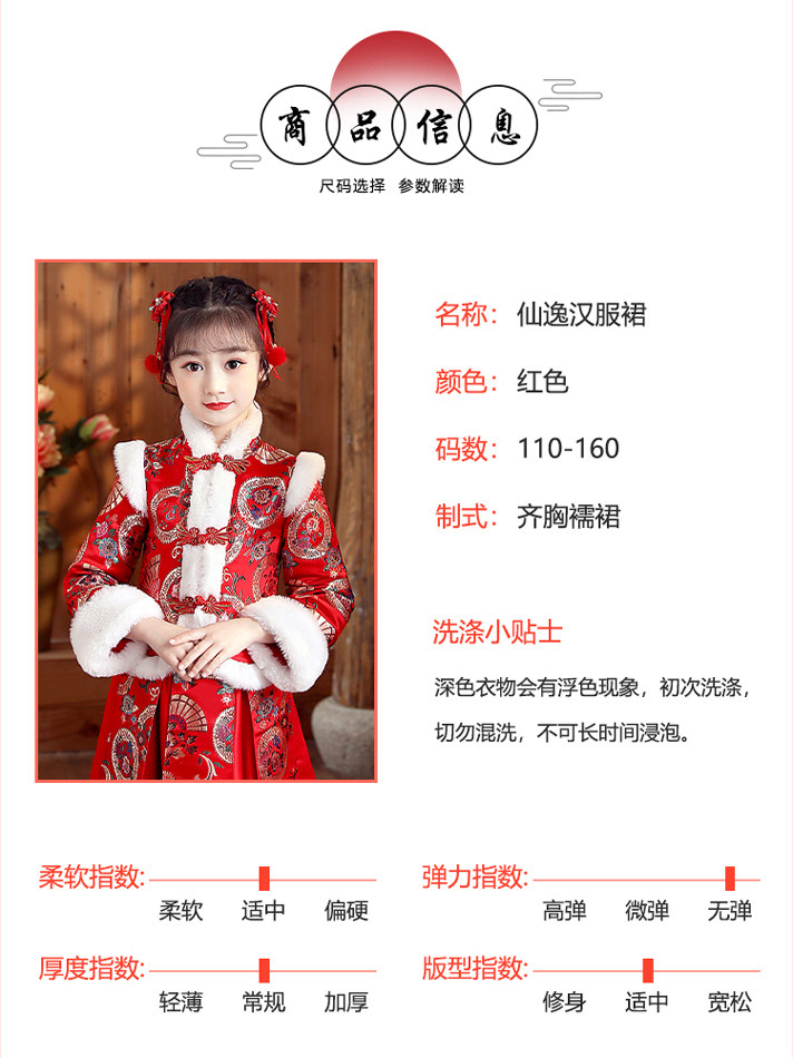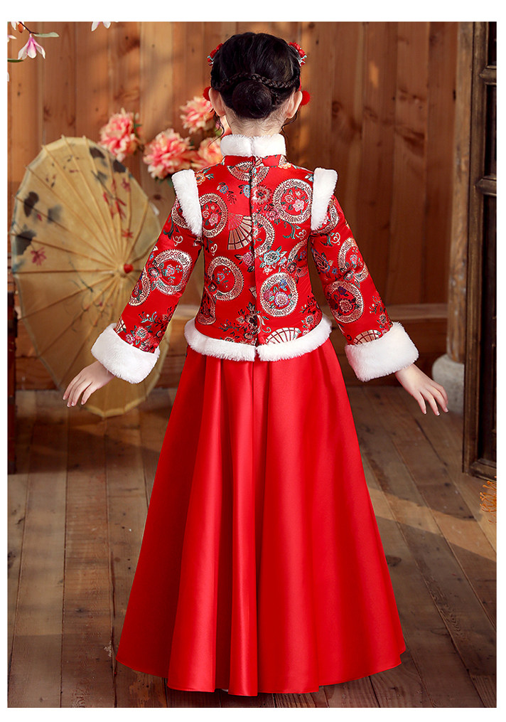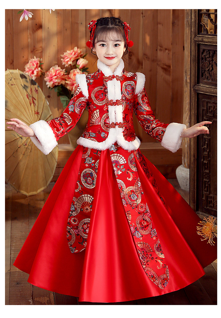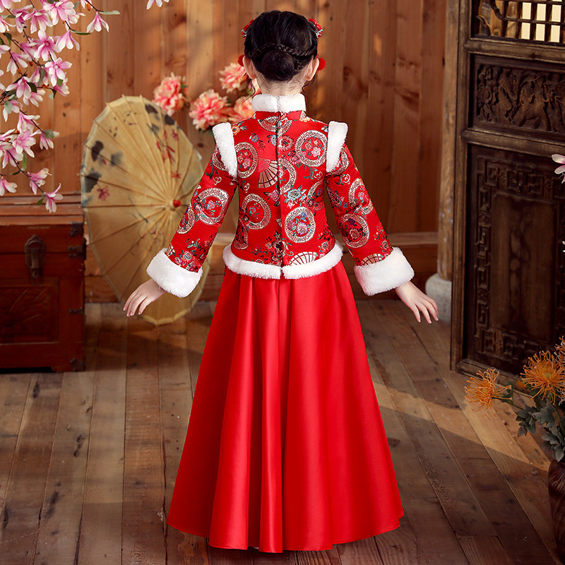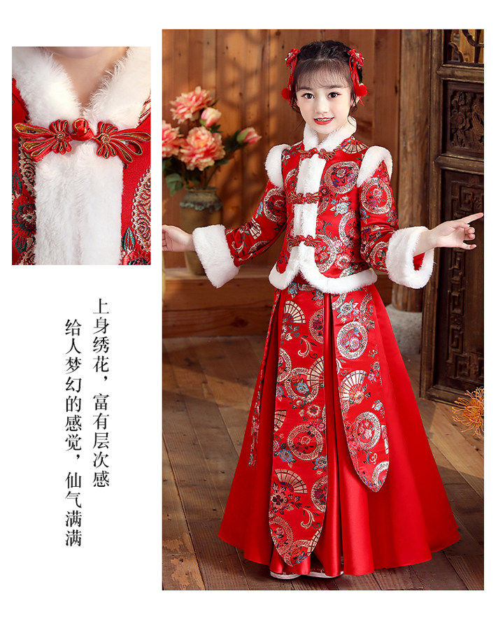 Ханьфу, свадебное платье, красный демисезонный детский пуховик, флисовый наряд маленькой принцессы, детская одежда