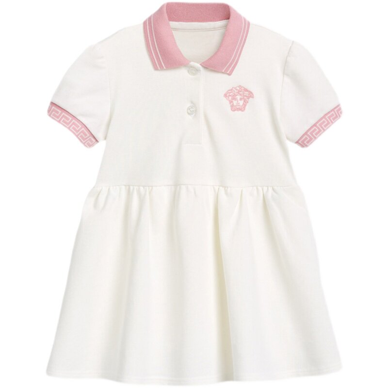 Белое платье, юбка на девочку, детская летняя одежда, хлопковая мини-юбка для отдыха, воротник поло