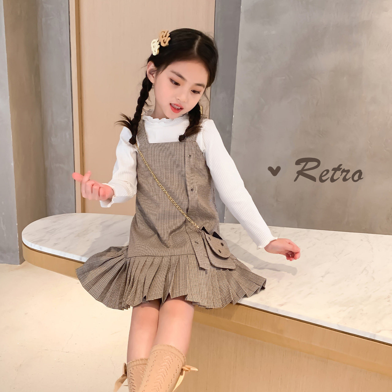 Платье, юбка на девочку, подтяжки, весенняя юбка в складку, детская одежда, коллекция 2022