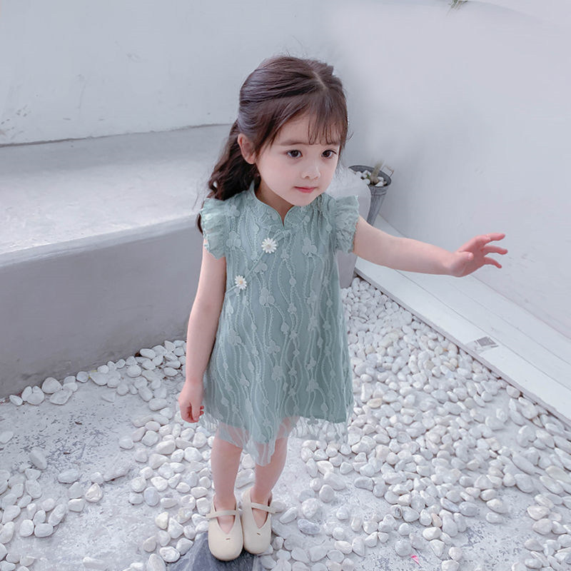 Платье, летняя одежда, кружевной наряд маленькой принцессы, юбка на девочку, ципао, в западном стиле