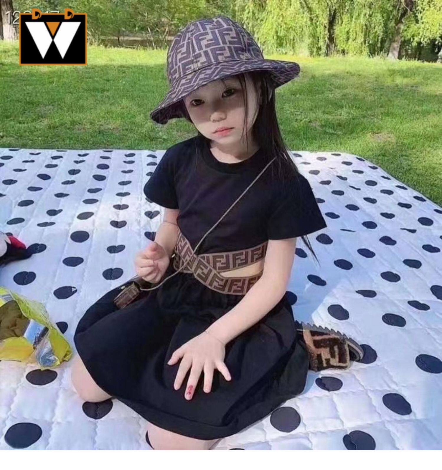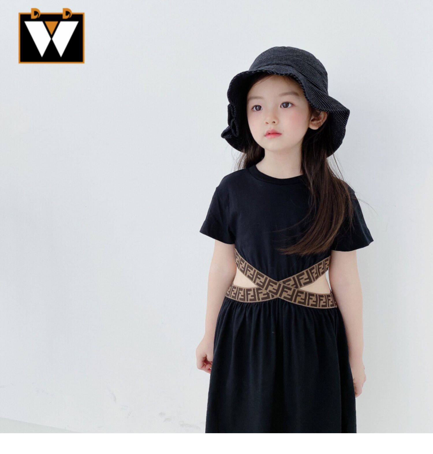 Fendi, классический ретро дизайнерский корсет, платье с коротким рукавом, (в наличии на складе), детская одежда, принт