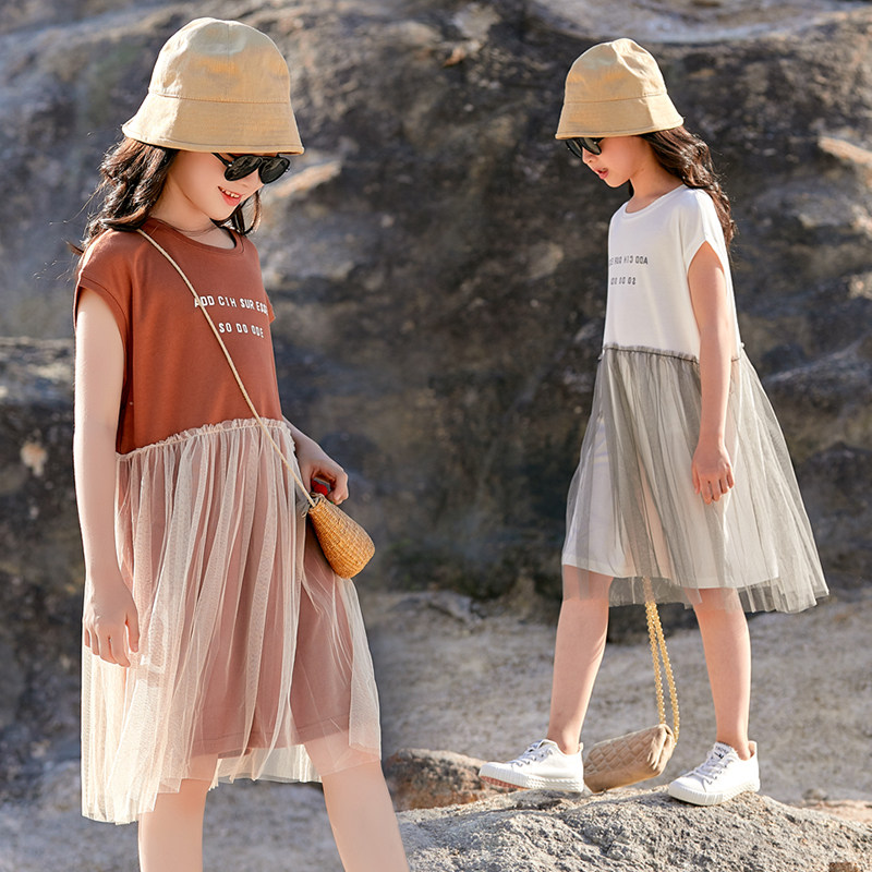 Платье с коротким рукавом, юбка, летняя одежда, детский наряд маленькой принцессы, подходит для подростков, свободный крой, семейный стиль