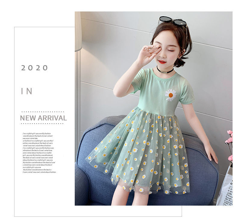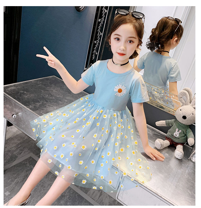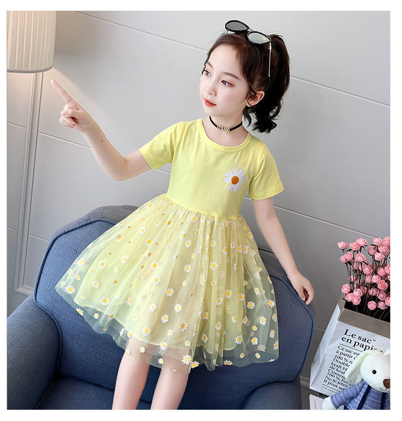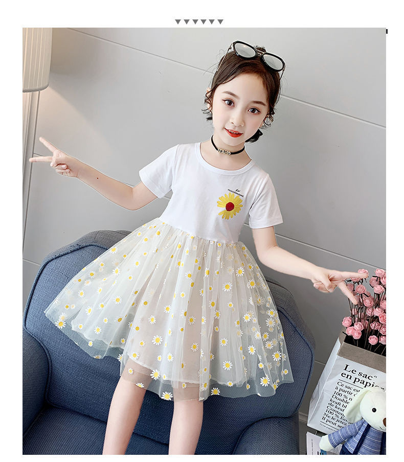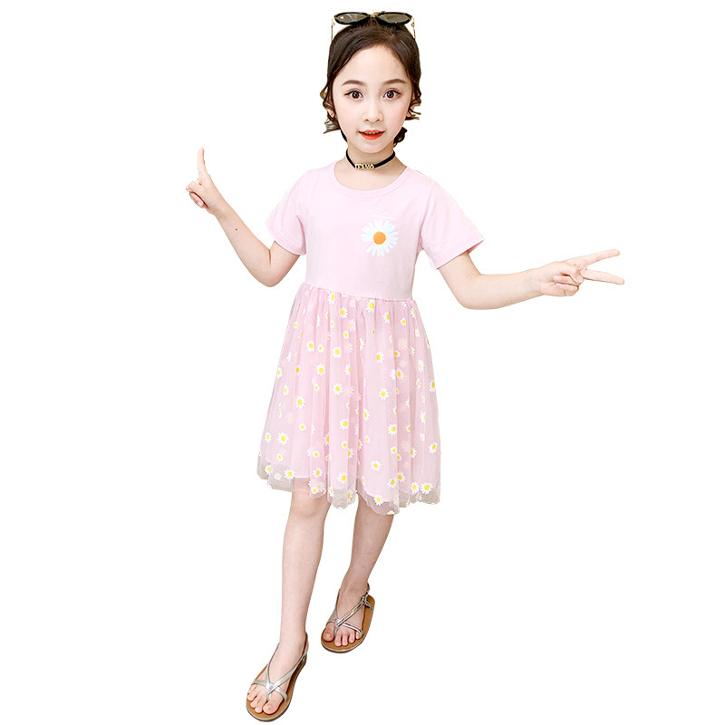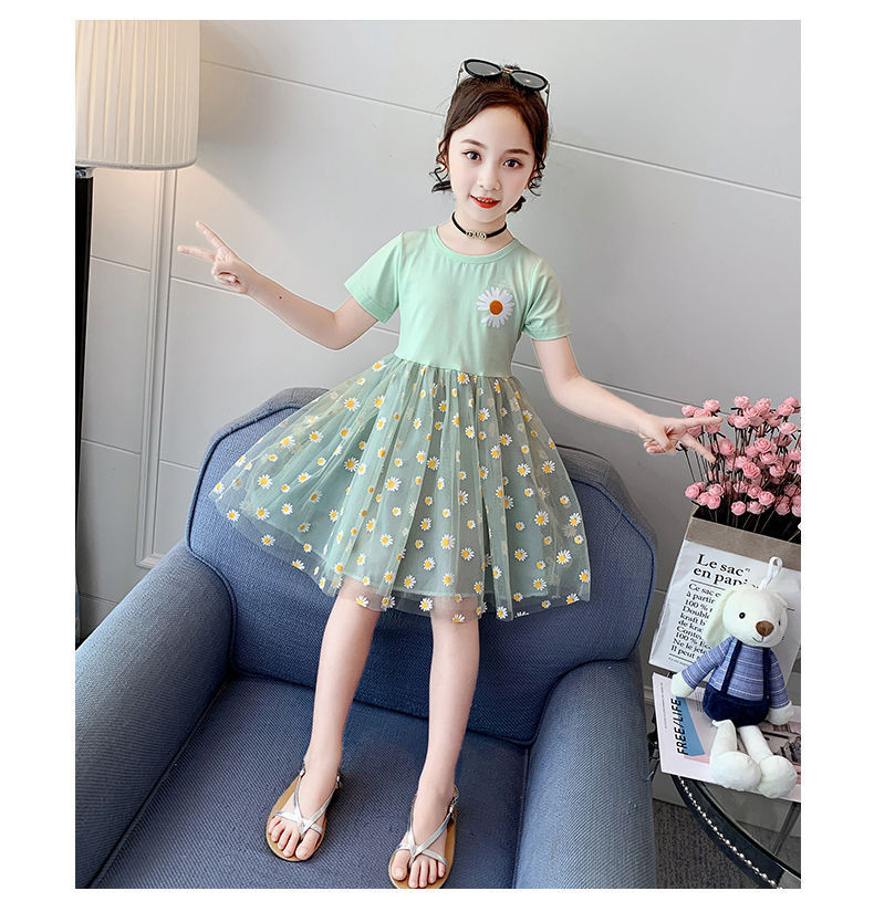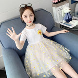 Летнее платье, детская кружевная юбка, подходит для подростков, коллекция 2022, короткий рукав