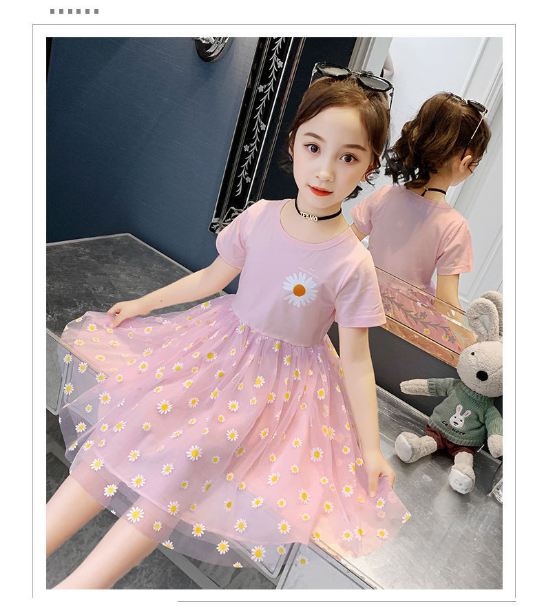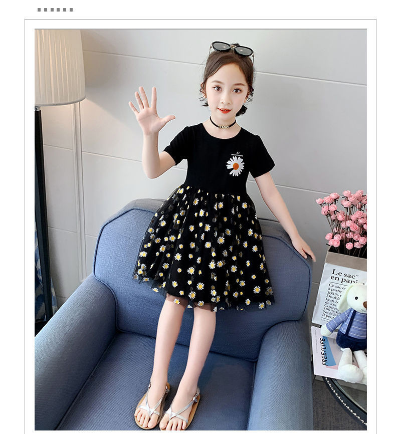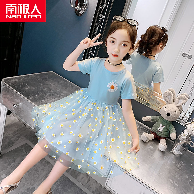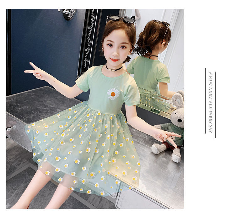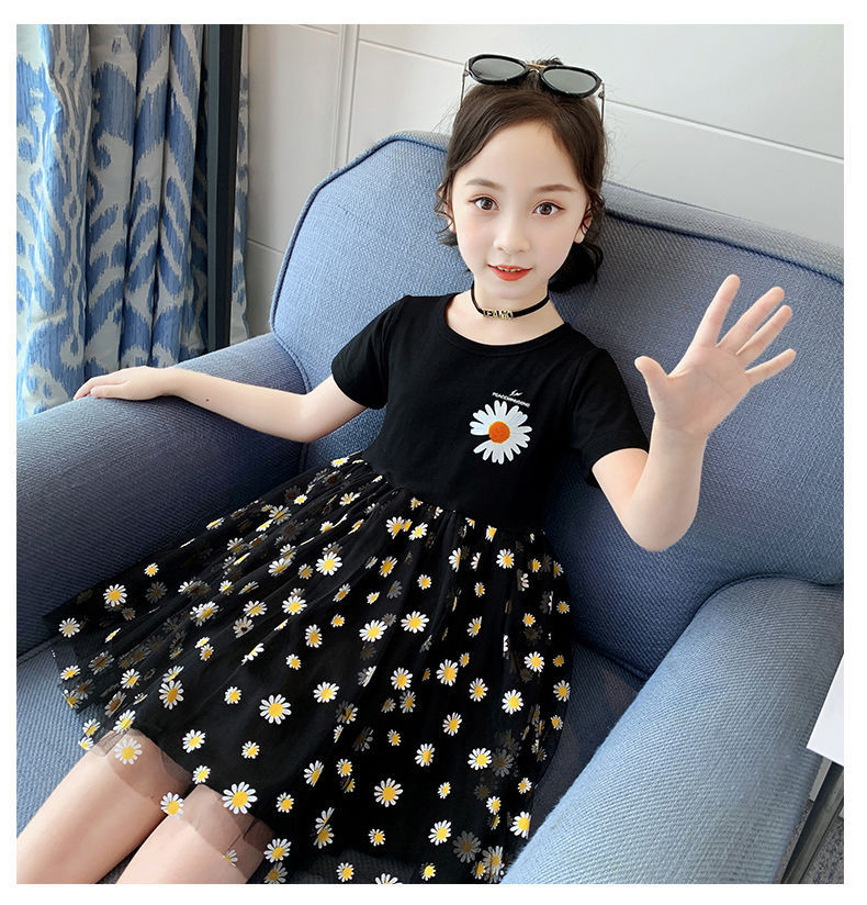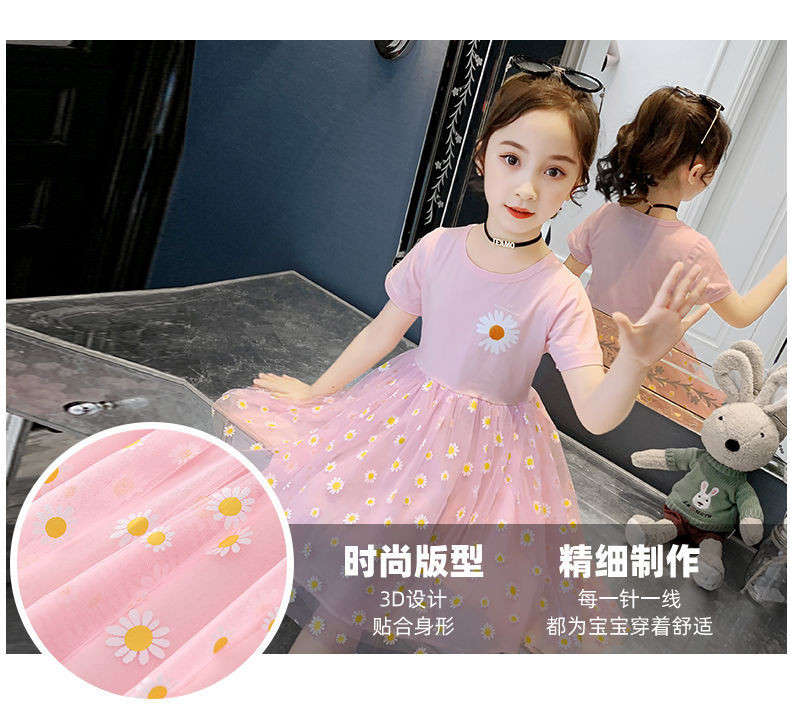 Летнее платье, детская кружевная юбка, подходит для подростков, коллекция 2022, короткий рукав