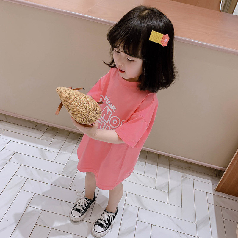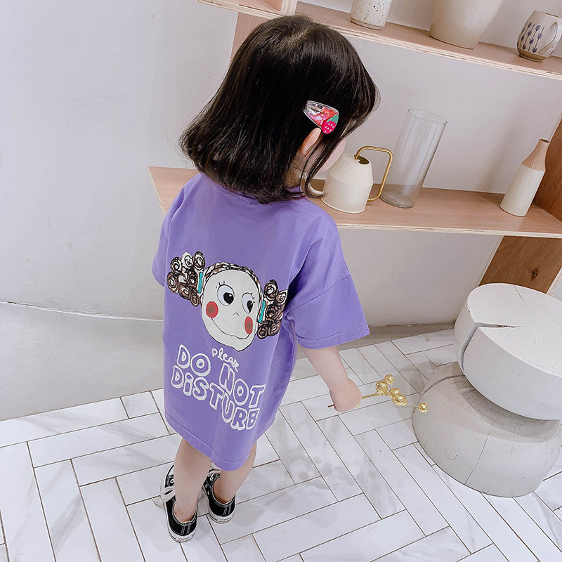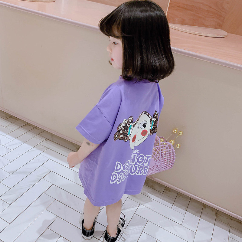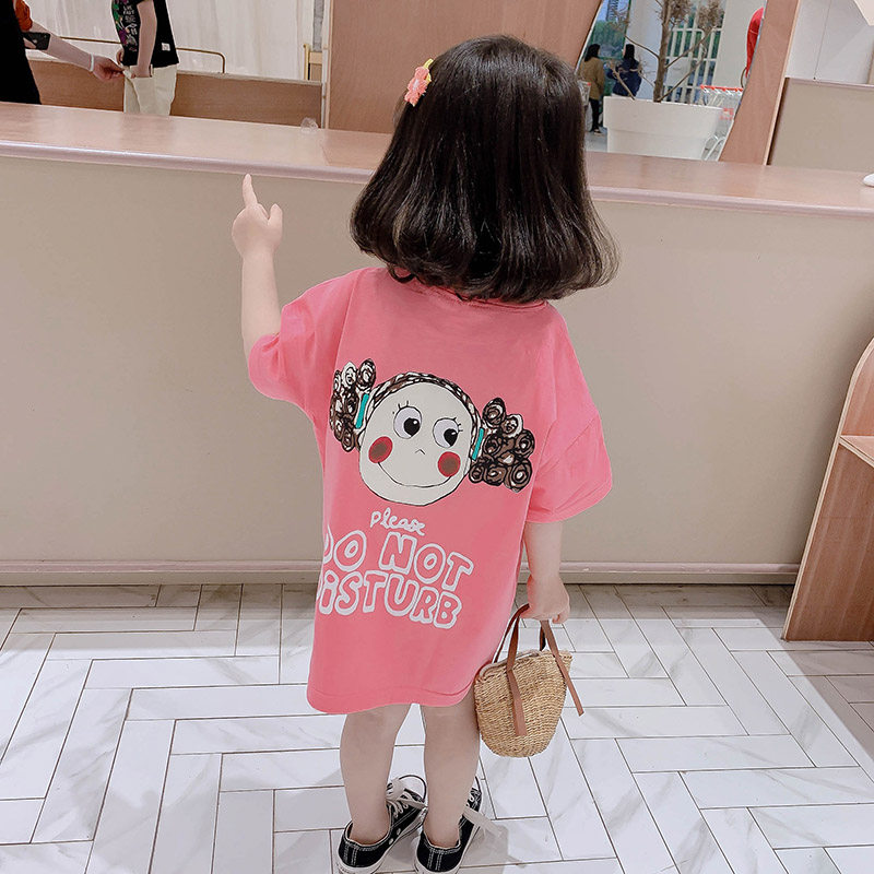 Футболка с коротким рукавом, хлопковое платье-футболка, летняя одежда, детское мультяшное платье, в западном стиле, коллекция 2022