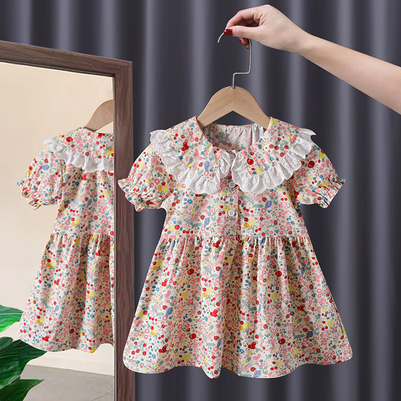 Хлопковый летний наряд маленькой принцессы, юбка на девочку, летняя одежда, платье, в западном стиле, цветочный принт