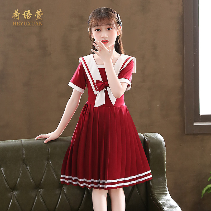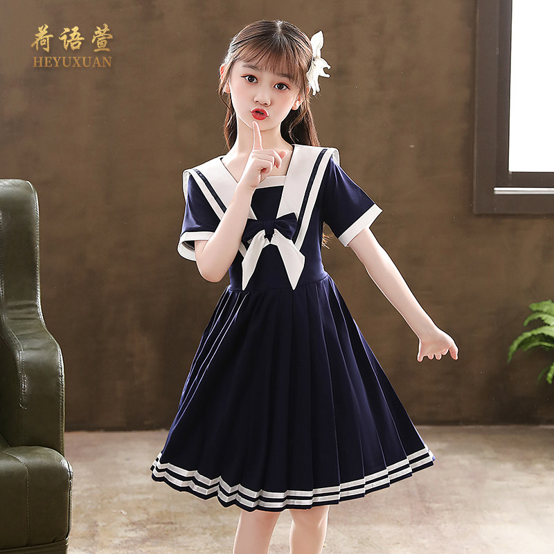 Летнее платье, юбка, летняя одежда, военно-морской летний наряд маленькой принцессы, детская одежда, в западном стиле