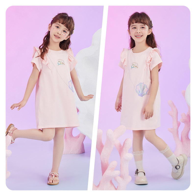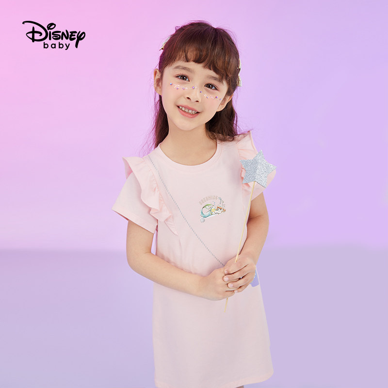Дисней, милое платье с коротким рукавом, летняя детская трикотажная мультяшная юбка, детская одежда, в западном стиле