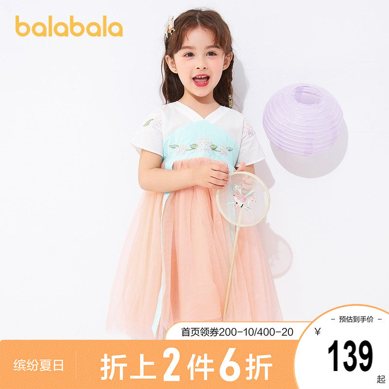 巴拉巴拉 Детская летняя юбка, детское ханьфу, платье с коротким рукавом, китайский стиль