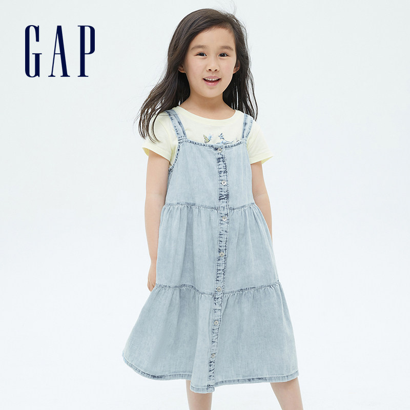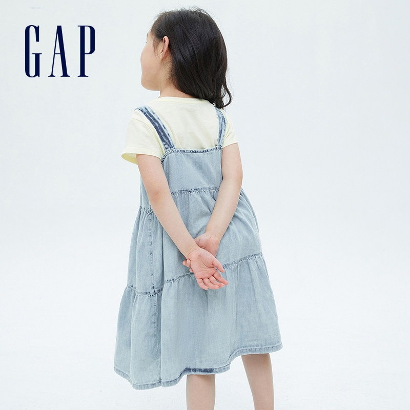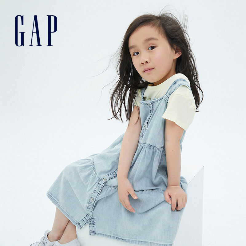 Gap Хлопковое легкое и тонкое джинсовое платье-комбинация, летнее свободное платье, сезон 2021, детская одежда