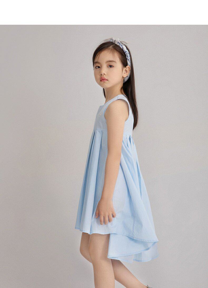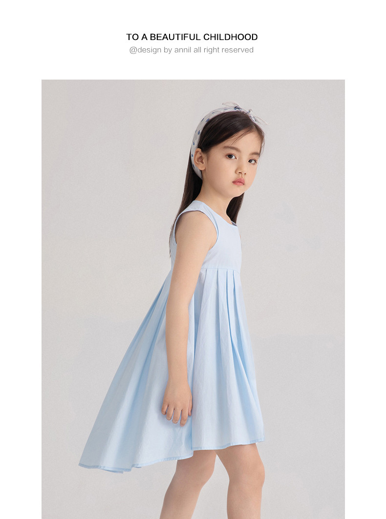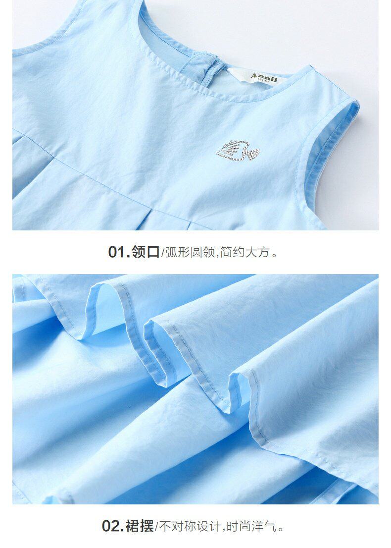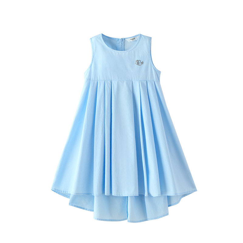 Детское летнее платье с рукавами без рукавов, хлопковая юбка, синее платье без рукавов, наряд маленькой принцессы, детская одежда