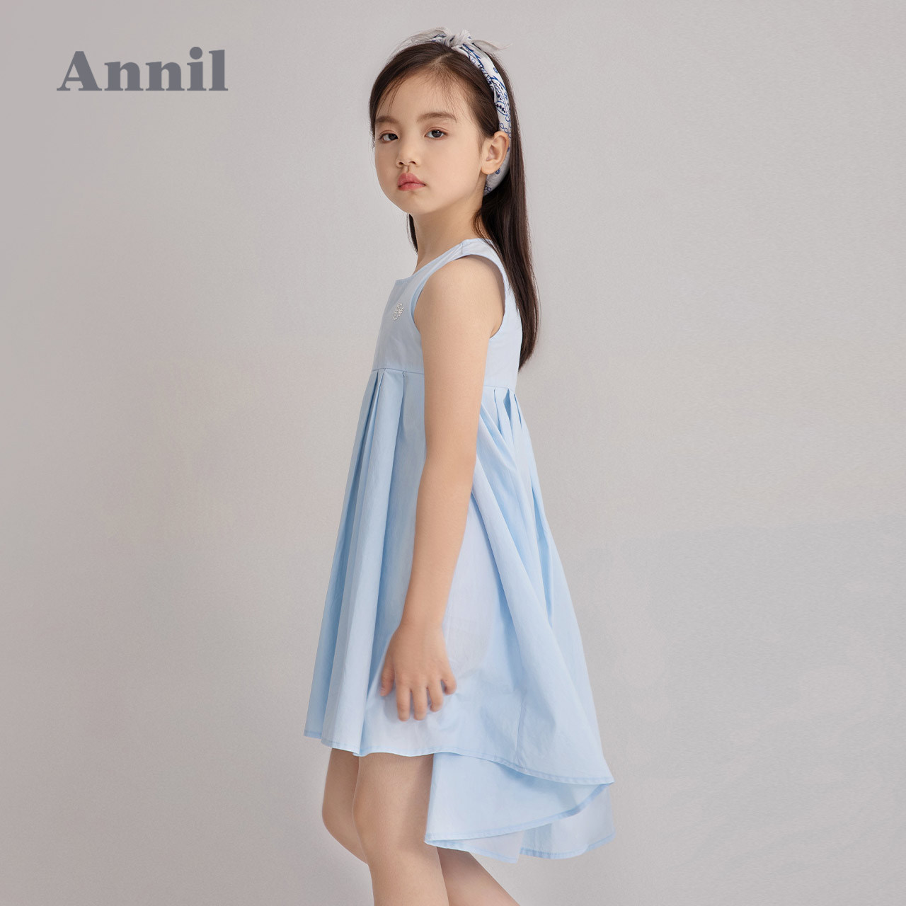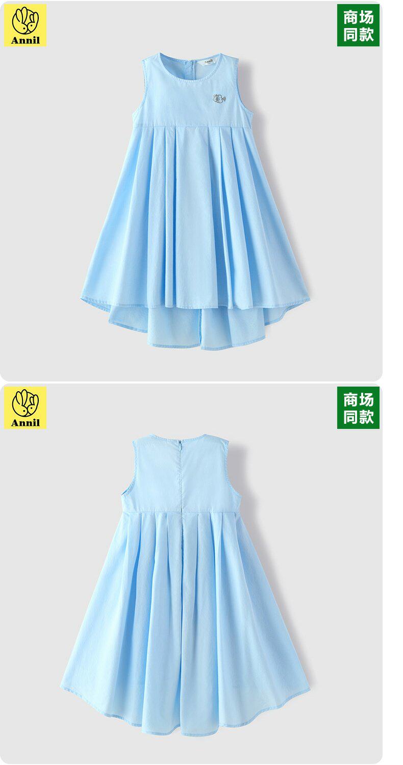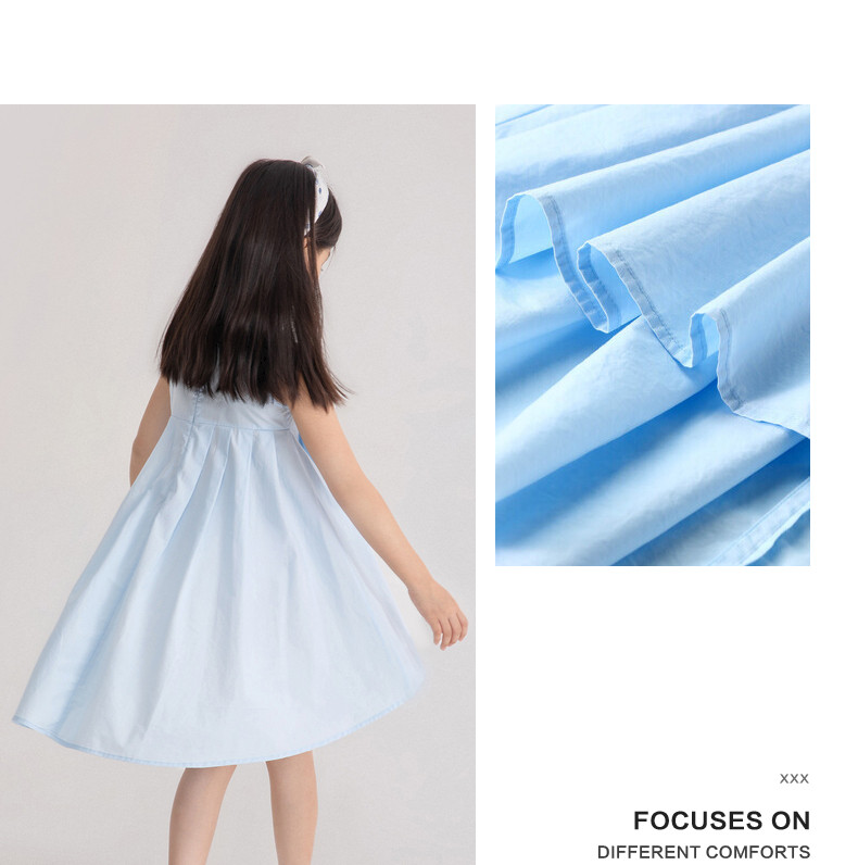 Детское летнее платье с рукавами без рукавов, хлопковая юбка, синее платье без рукавов, наряд маленькой принцессы, детская одежда