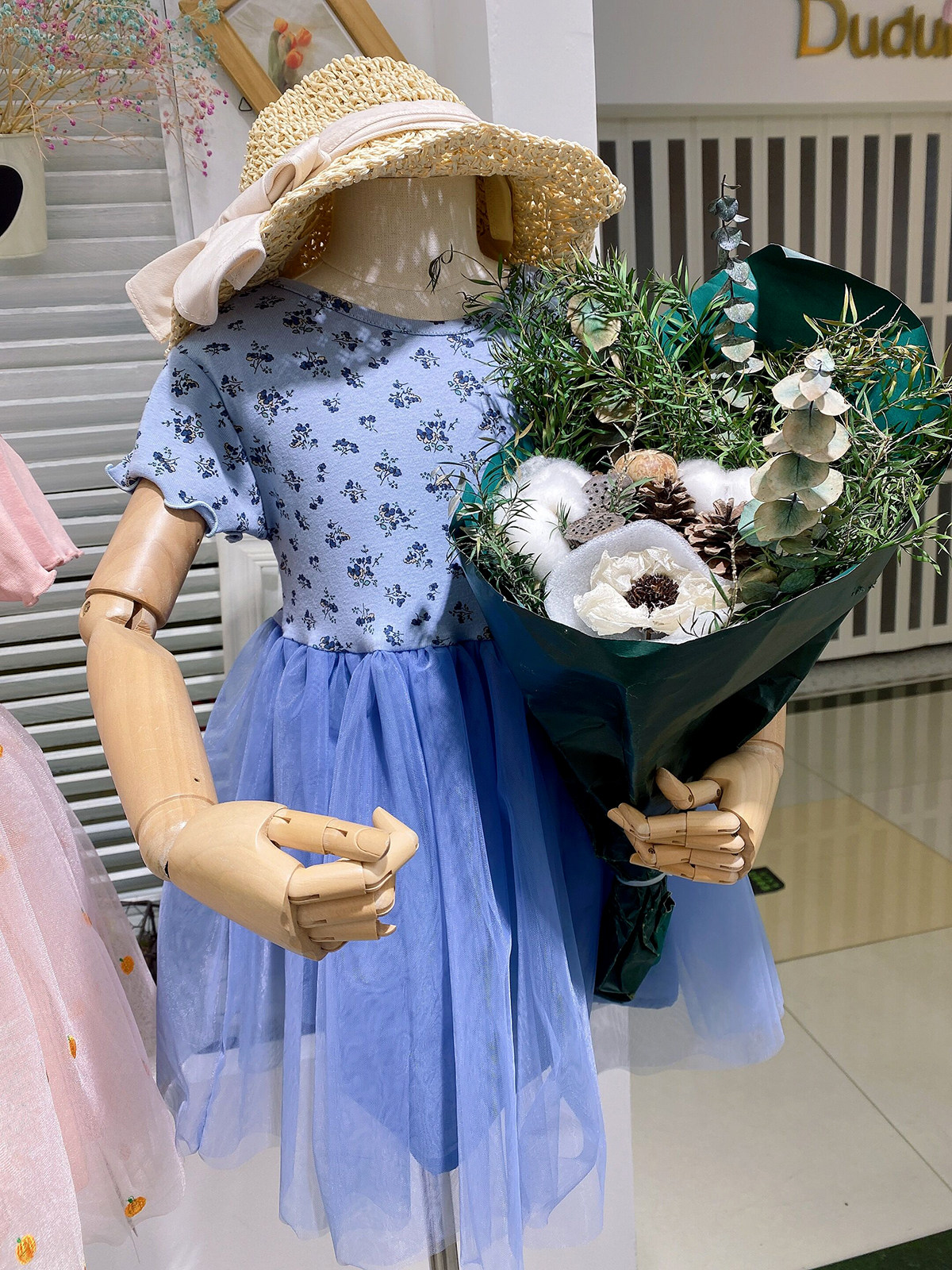 Верхняя часть тела имеет простой цветочный дизайн.