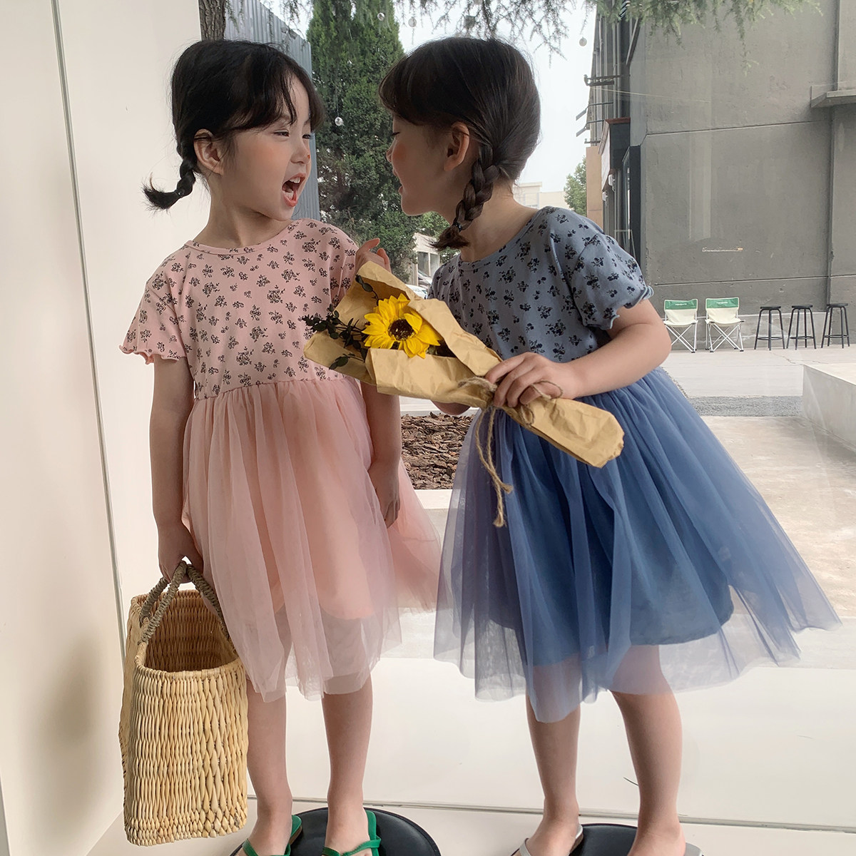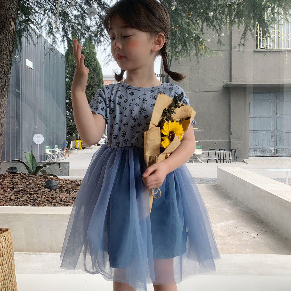 Детские платья, пышные газовые юбки с короткими рукавами и грибком для девочек, юбки принцессы, летняя стильная детская одежда