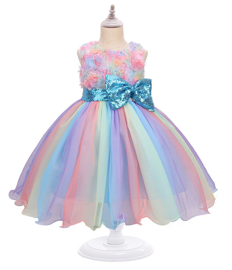 Платье девочки цветочницы, радужный манекен головы, детский наряд для музыкальных выступлений, подходит для подростков