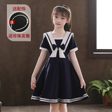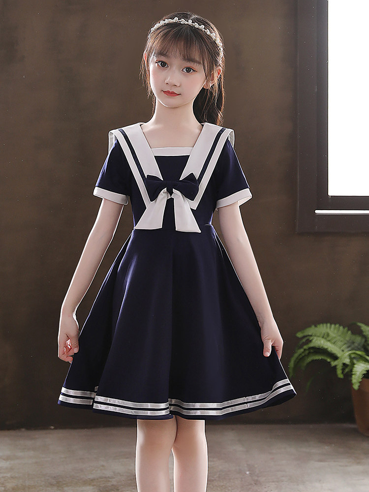 Летнее платье, летняя одежда, военно-морская юбка в складку, наряд маленькой принцессы, коллекция 2023, в западном стиле, детская одежда, популярно в интернете
