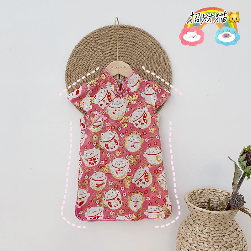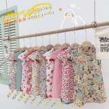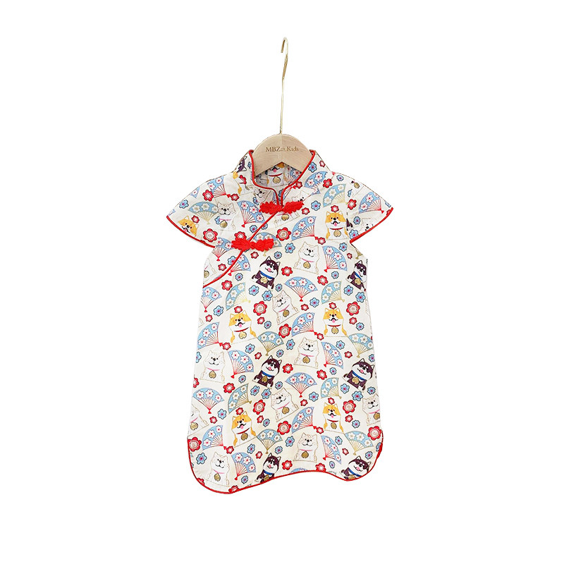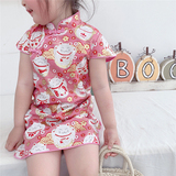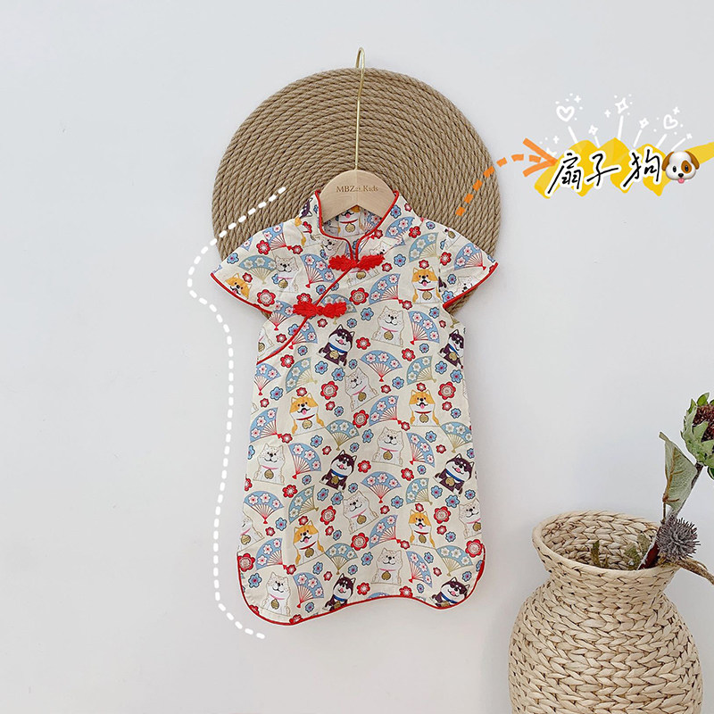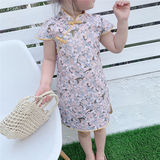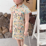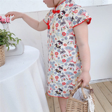 Ципао, мультяшное платье, цветочный принт, из хлопка и льна