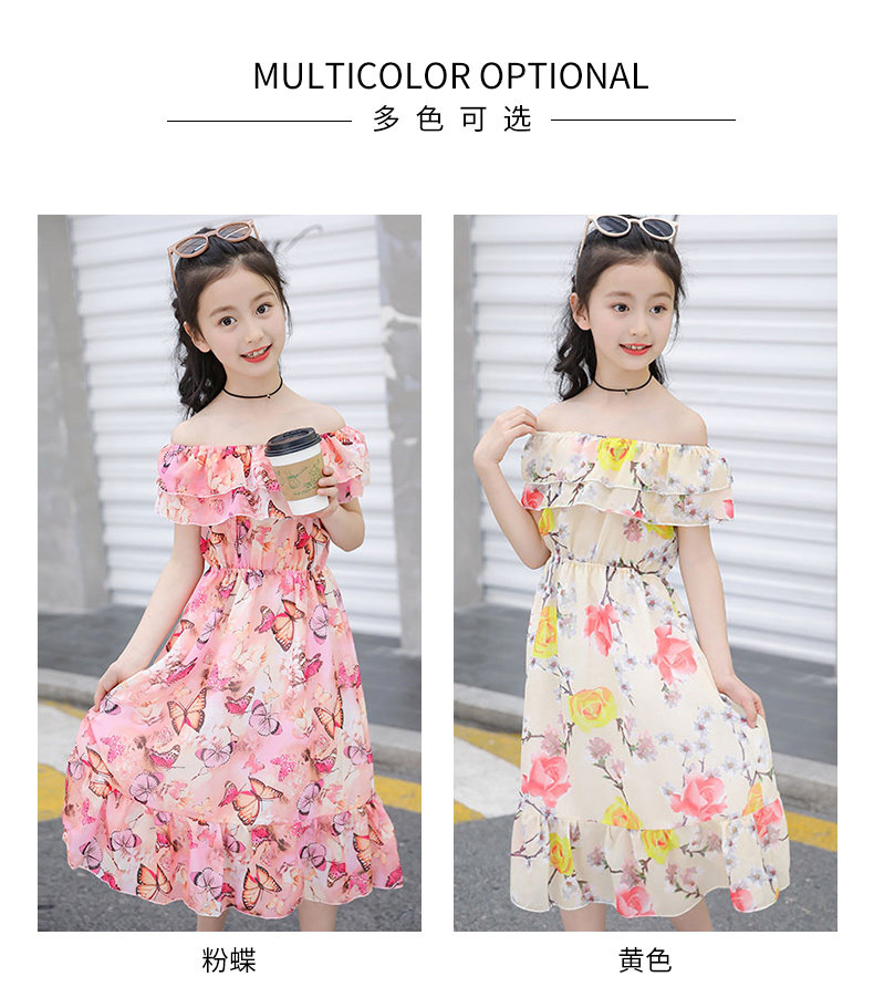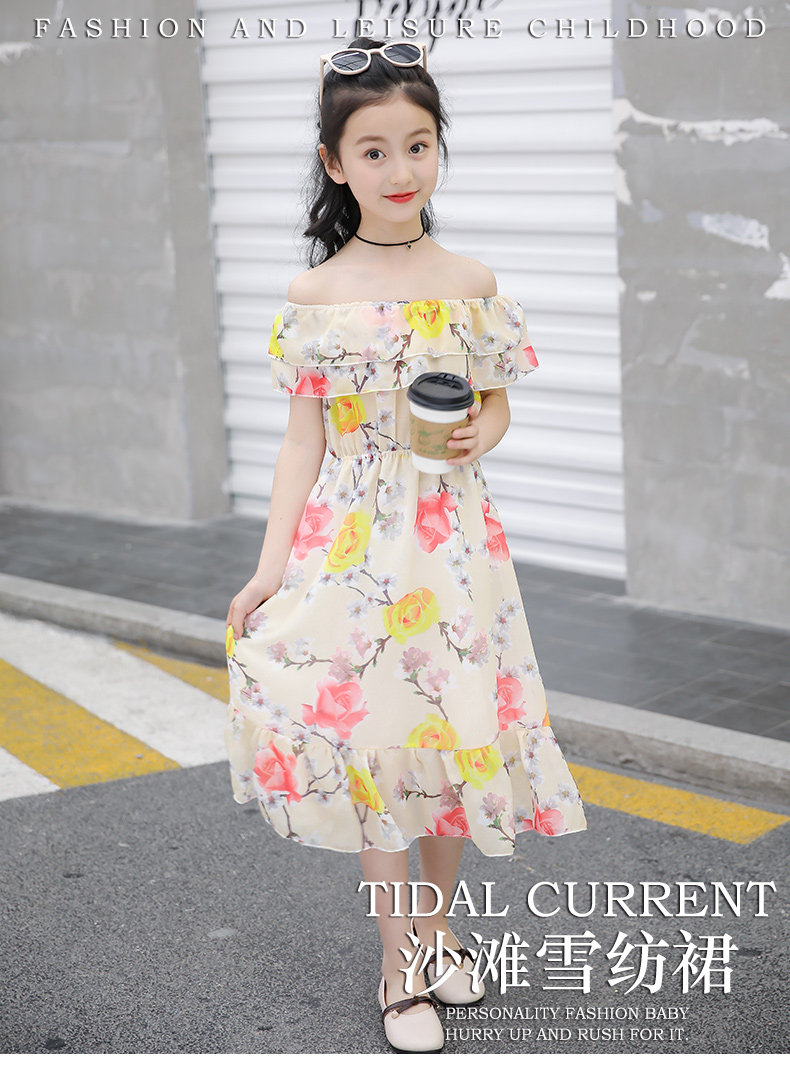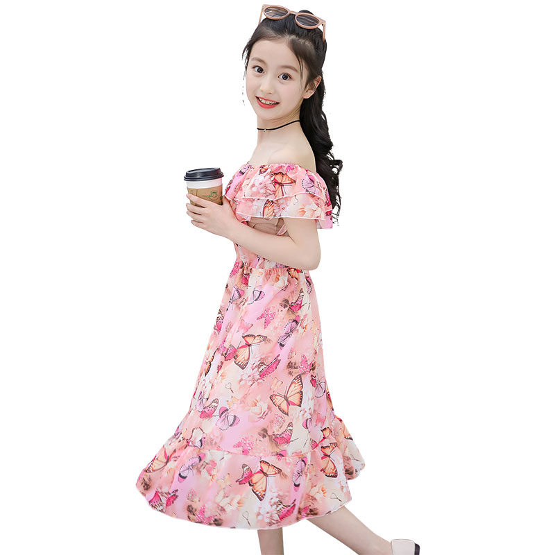 Летняя длинная юбка, детское шифоновое платье, 12 лет, подходит для подростков, открытые плечи, в западном стиле, в цветочек