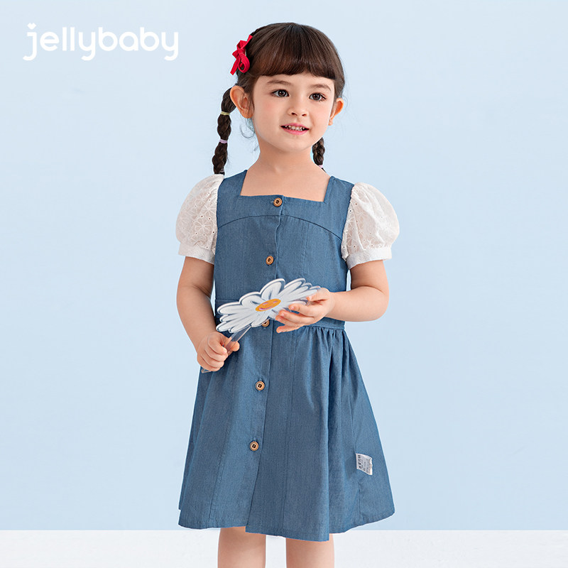 Летняя летняя одежда, хлопковое платье с коротким рукавом для принцессы, джинсовая юбка для девочек, коллекция 2021