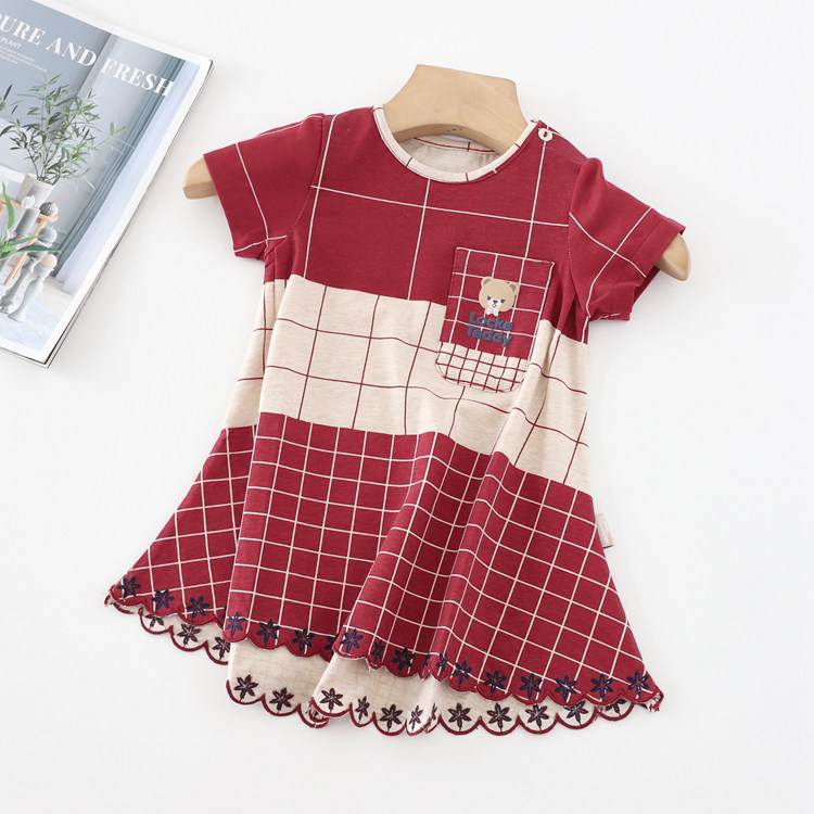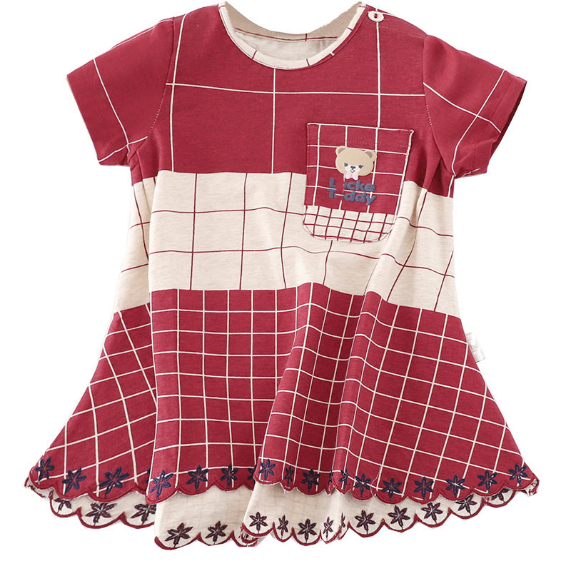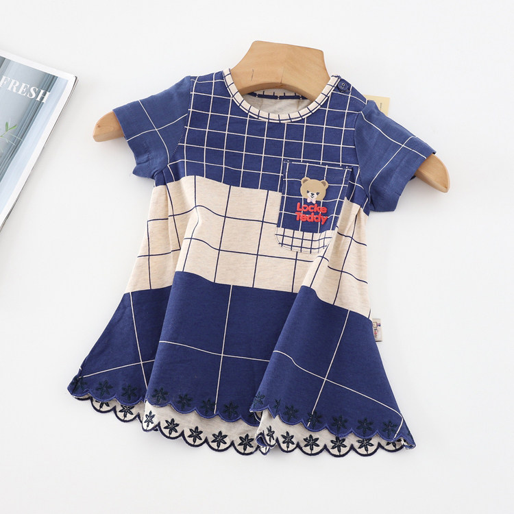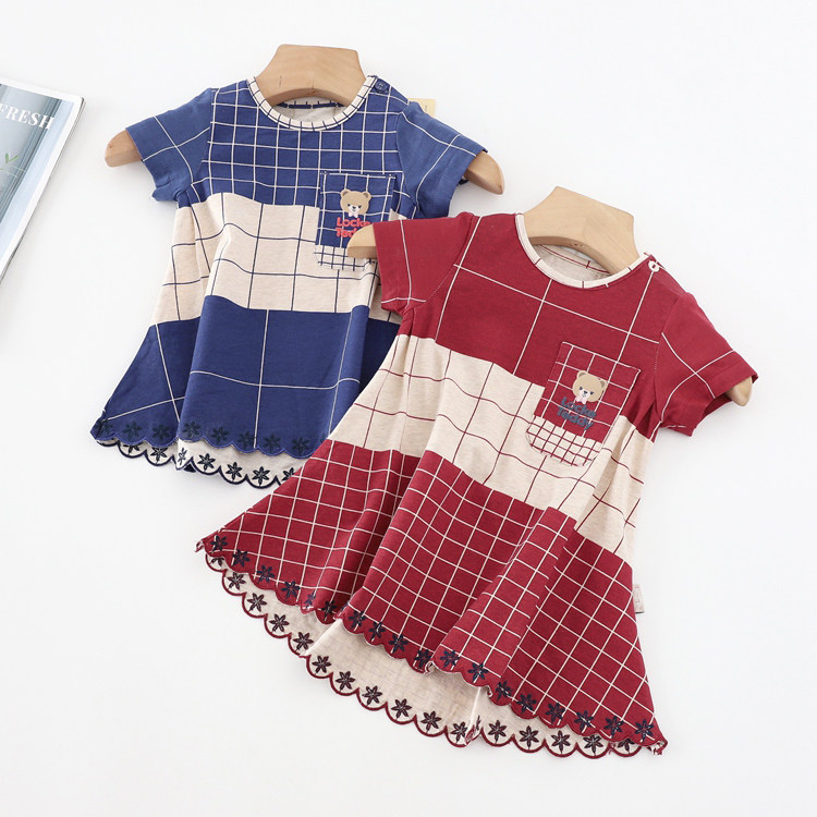 Летнее тонкое платье, юбка, детская одежда, в британском стиле, короткий рукав, А-силуэт, в западном стиле