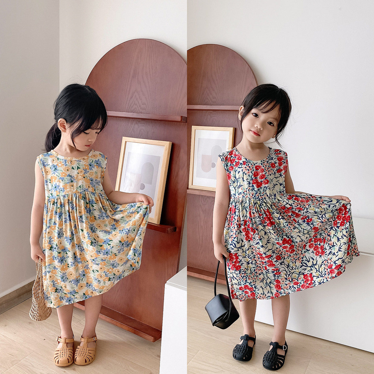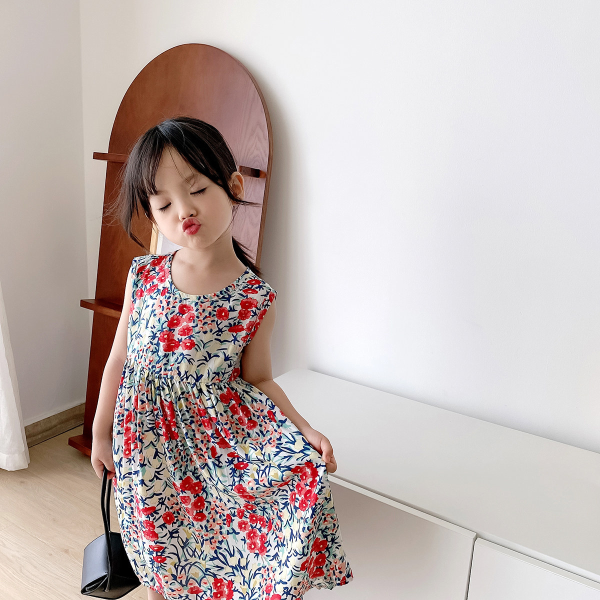 Прохладное детское платье без рукавов без рукавов, в цветочек, подходит для подростков, детская одежда