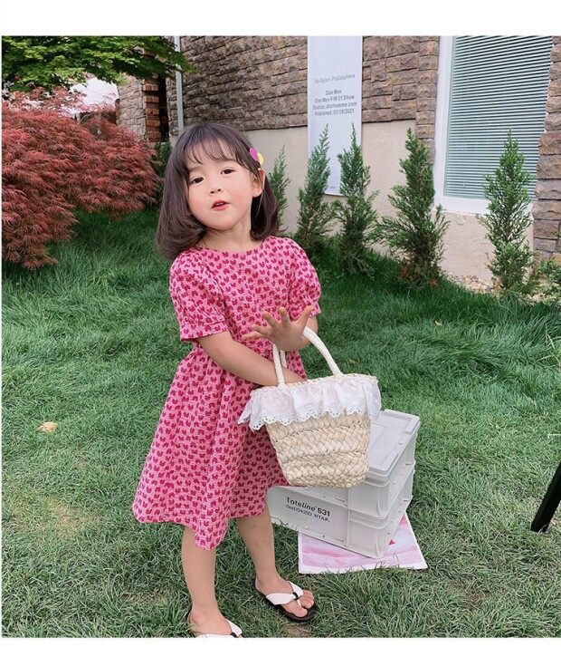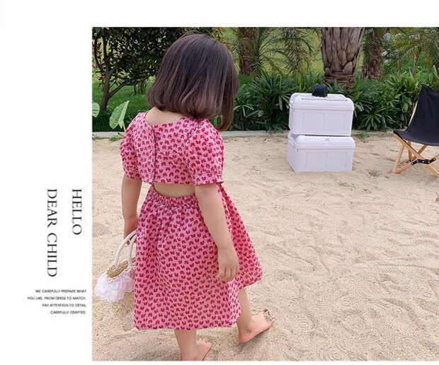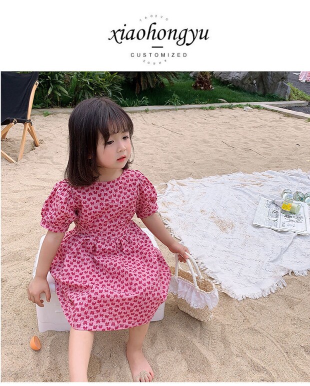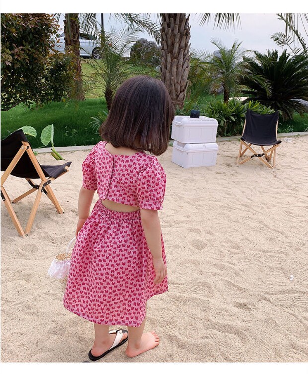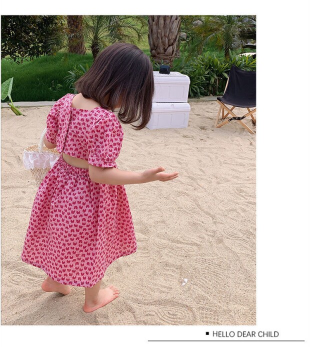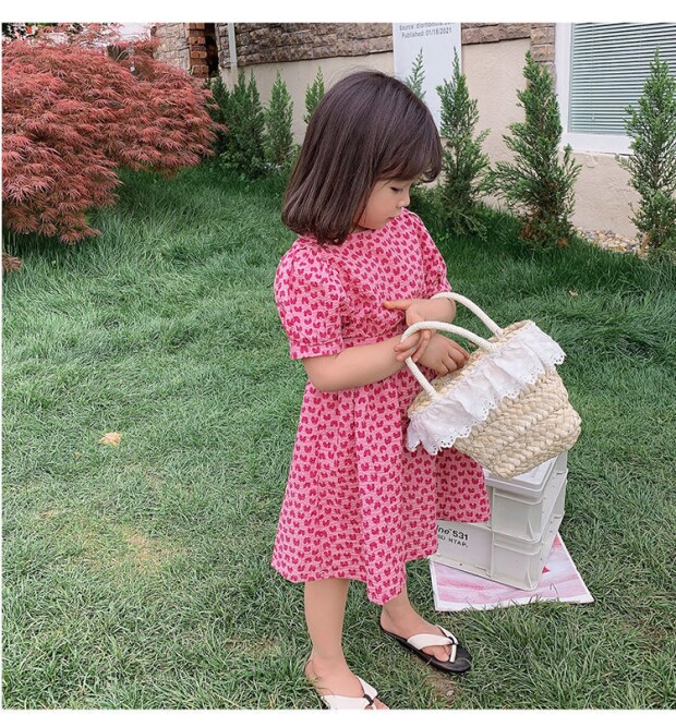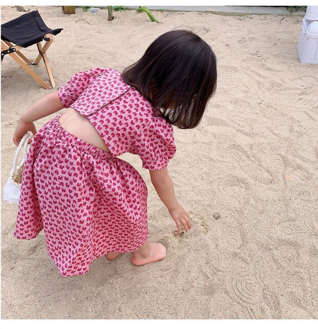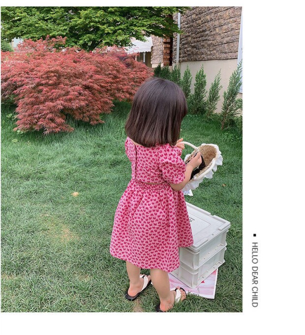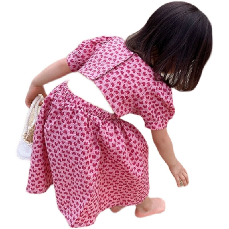 Летнее платье, юбка, детская хлопковая летняя одежда, коллекция 2023, в цветочек, детская одежда