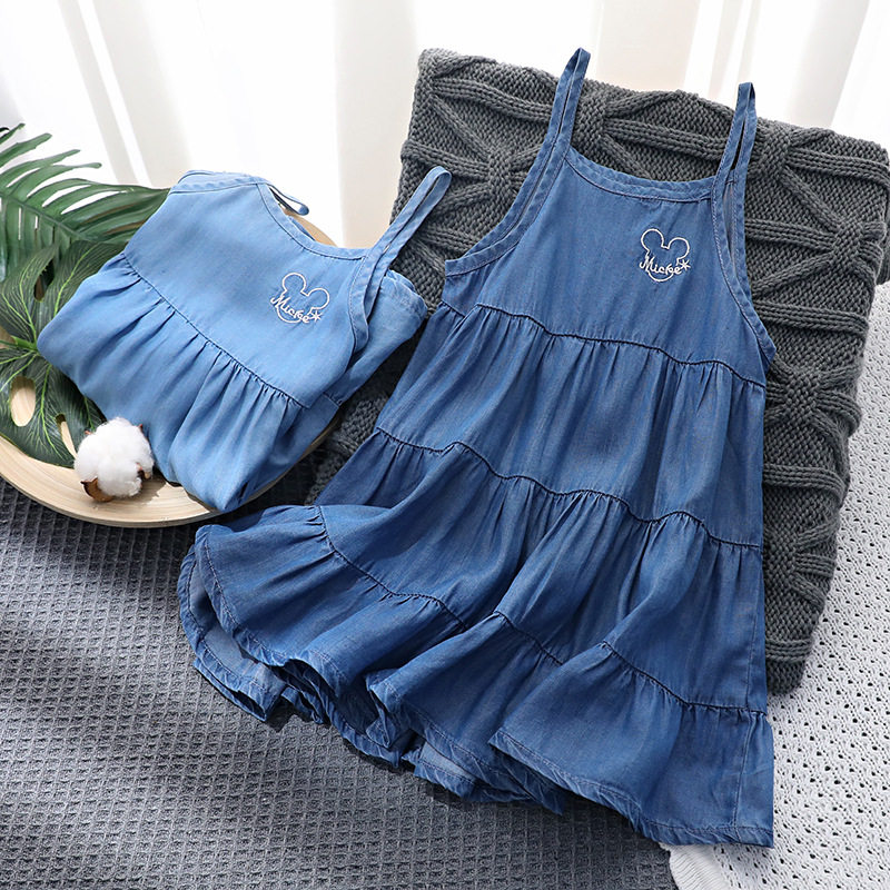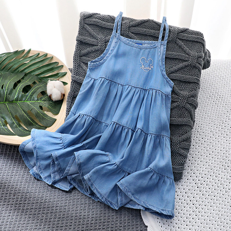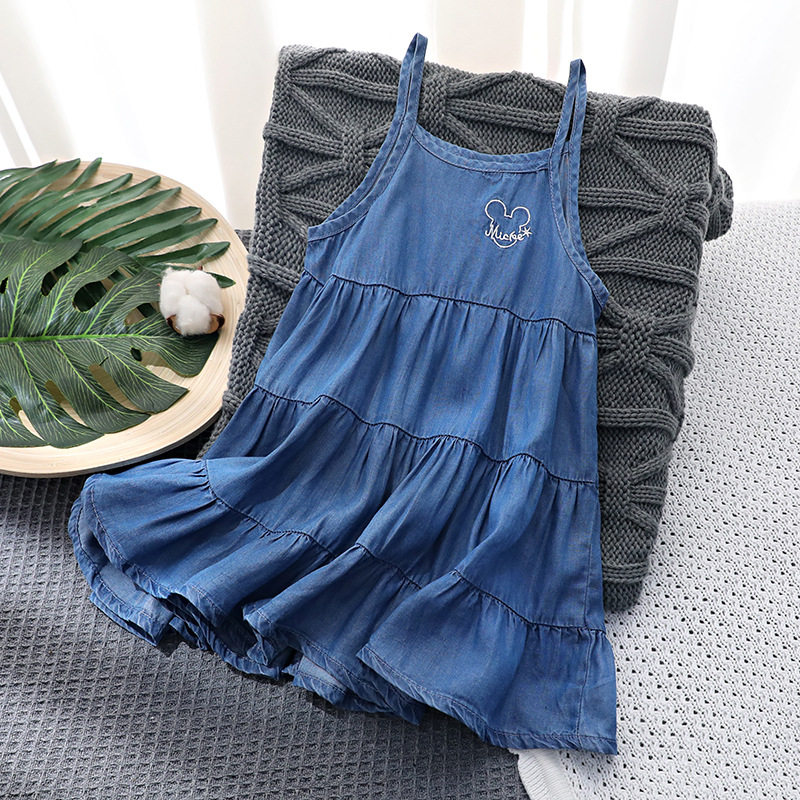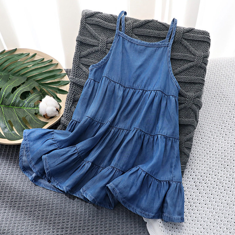 Летняя хлопковая джинсовая юбка, детское платье без рукавов, европейский стиль, эффект подтяжки