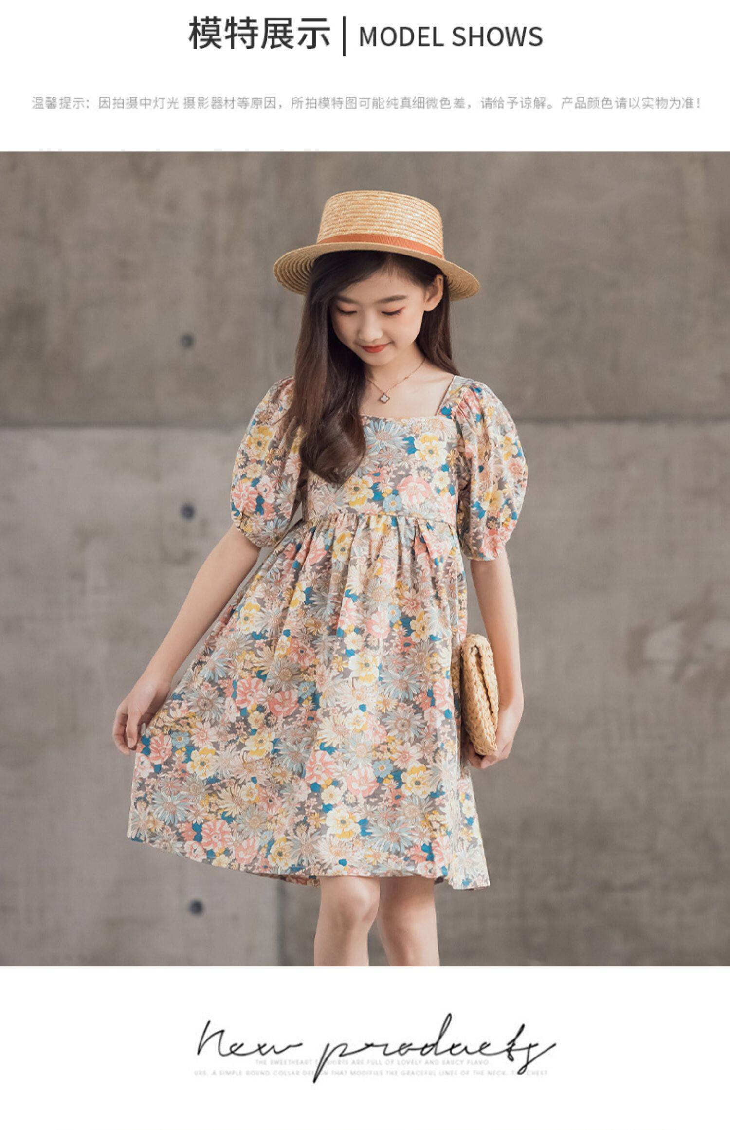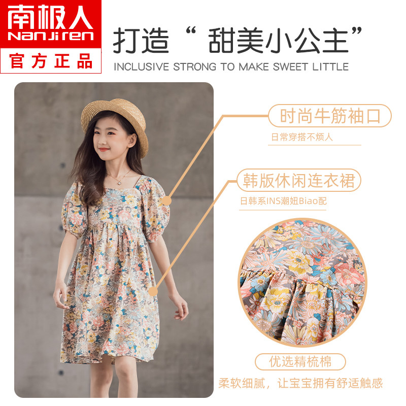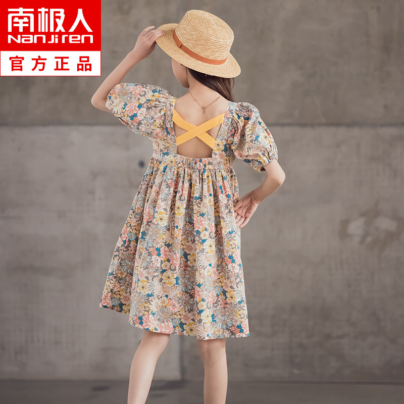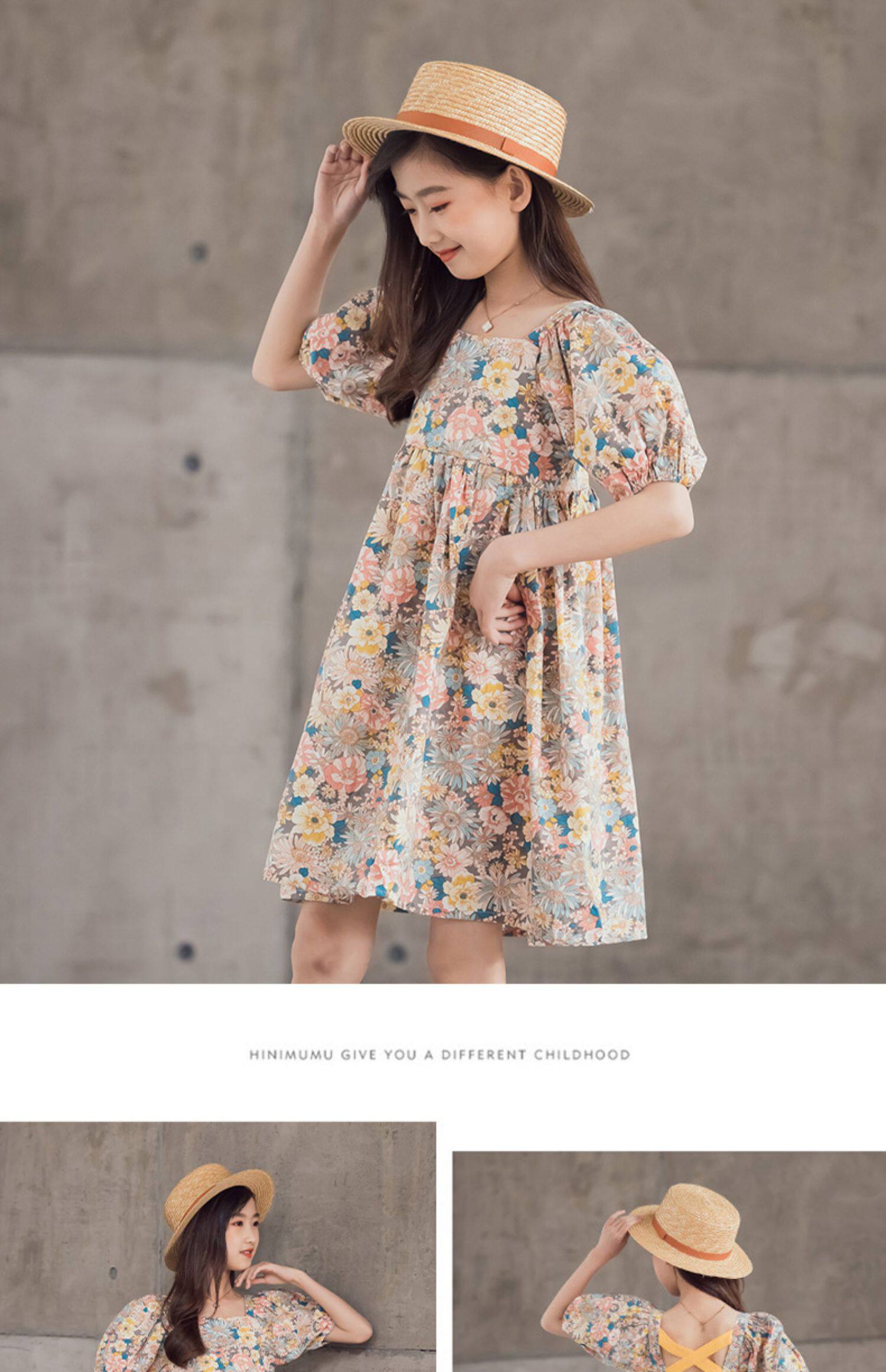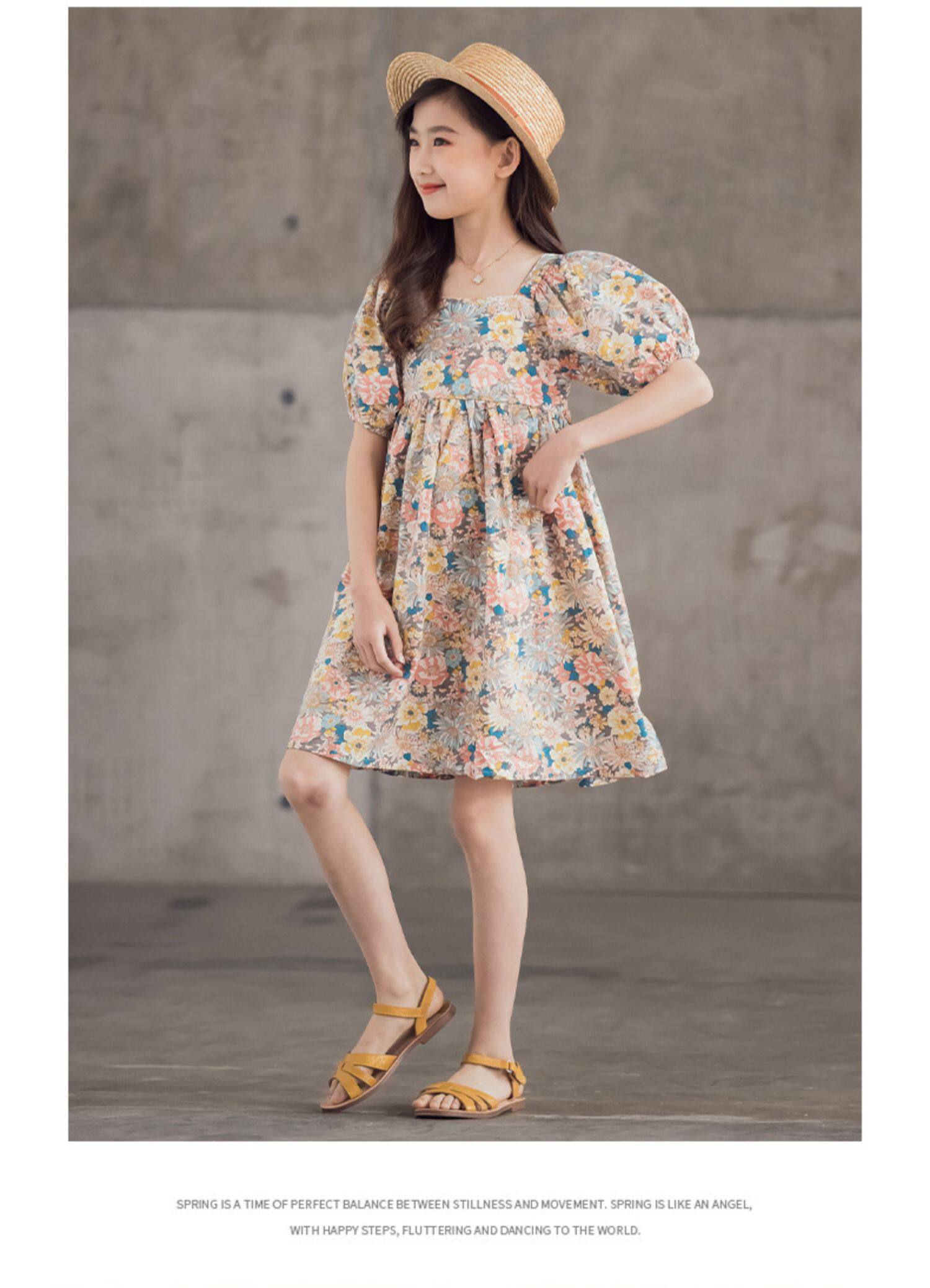 Платье, летняя хлопковая детская юбка, подходит для подростков, короткий рукав, в цветочек