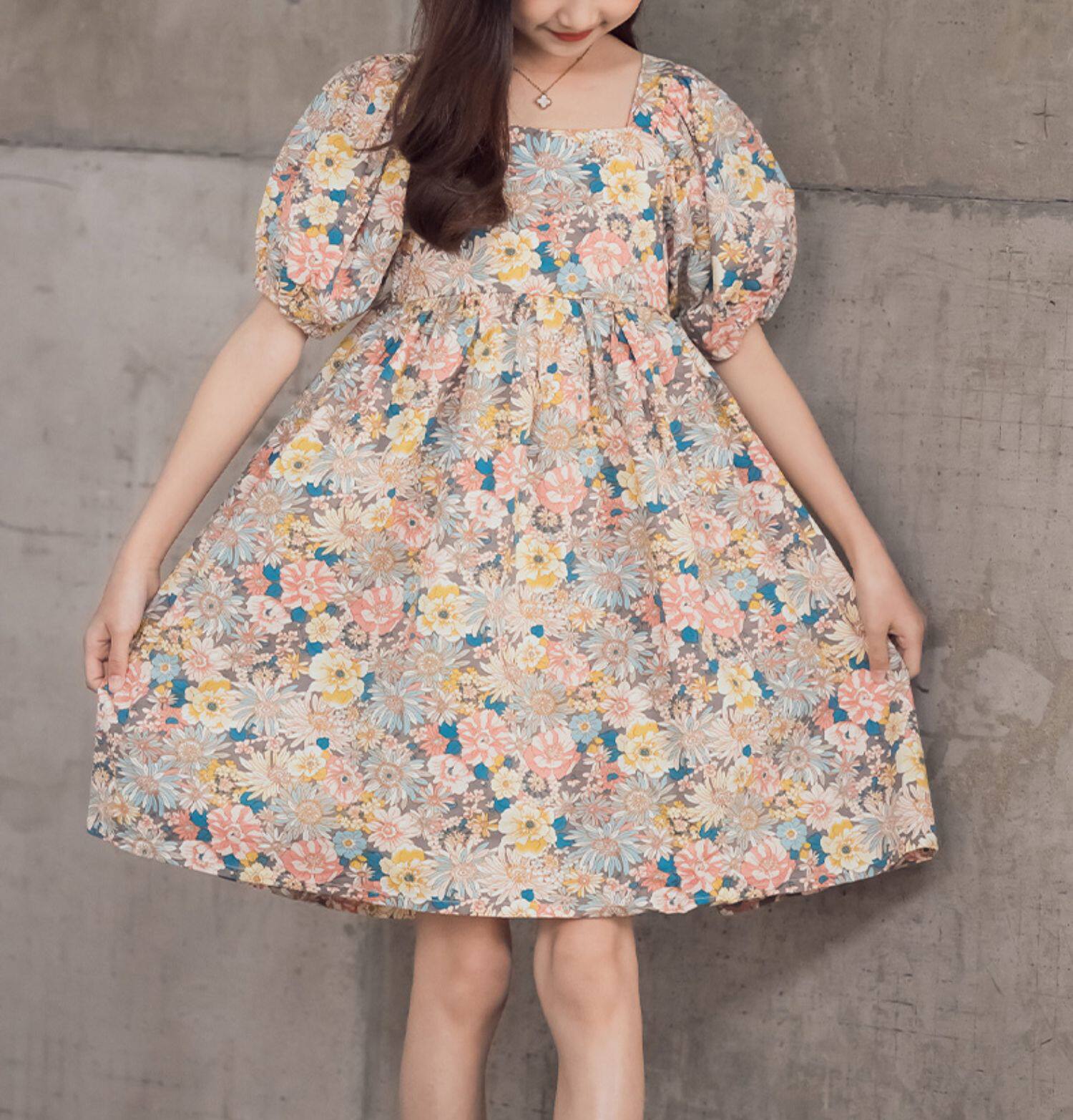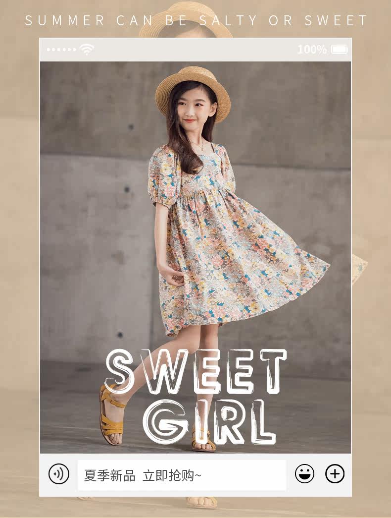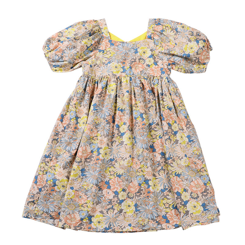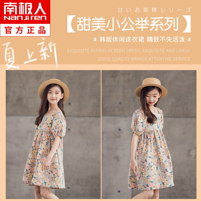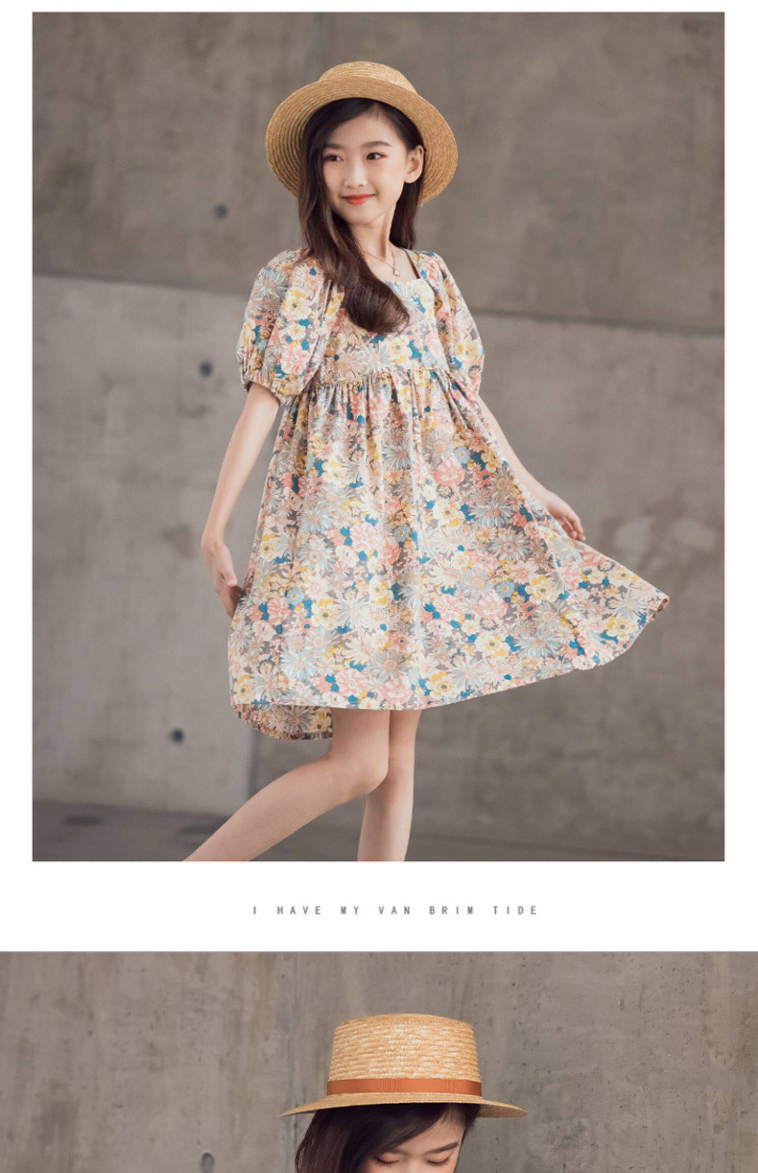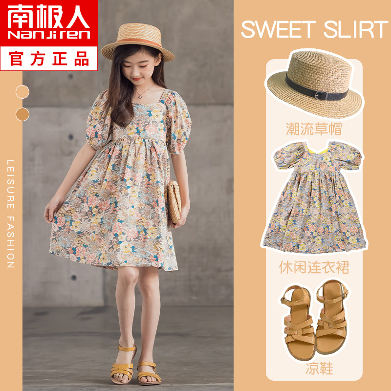 Платье, летняя хлопковая детская юбка, подходит для подростков, короткий рукав, в цветочек