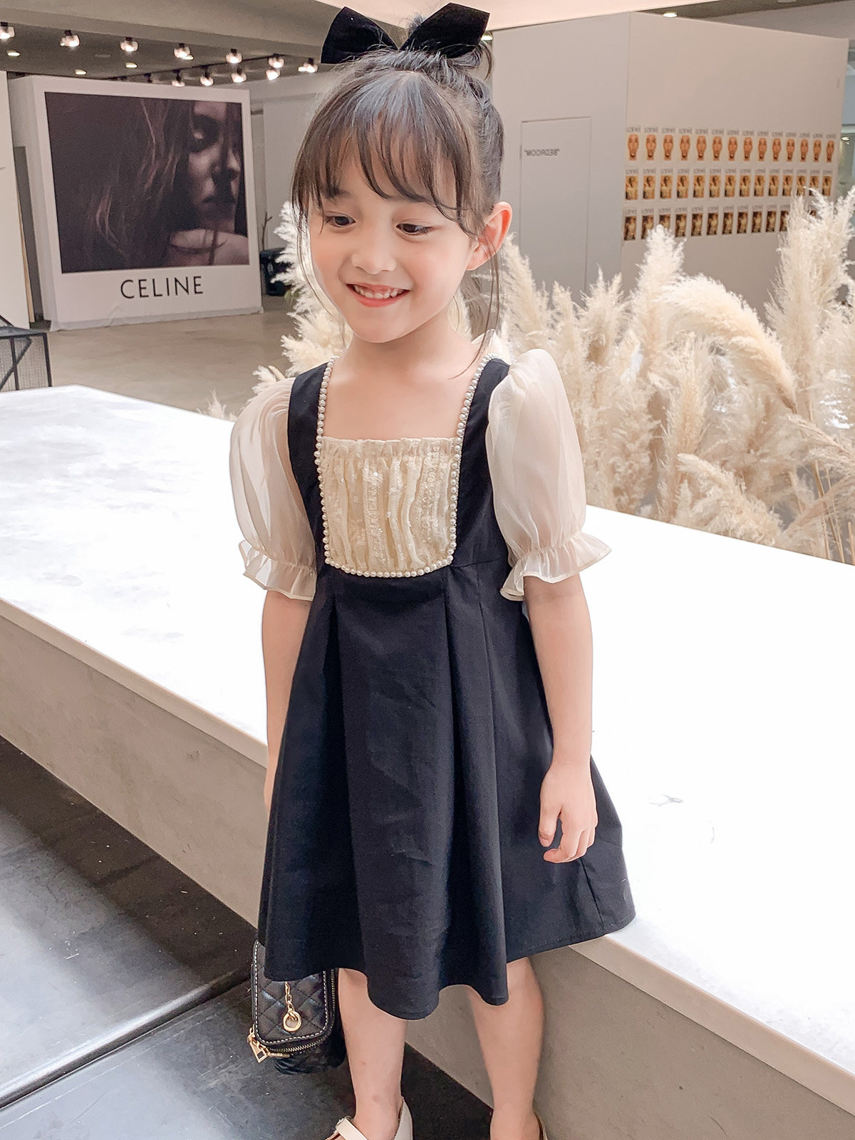 Комплект, осеннее платье, черный наряд маленькой принцессы, юбка, в западном стиле, короткий рукав