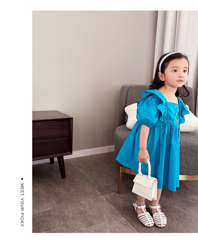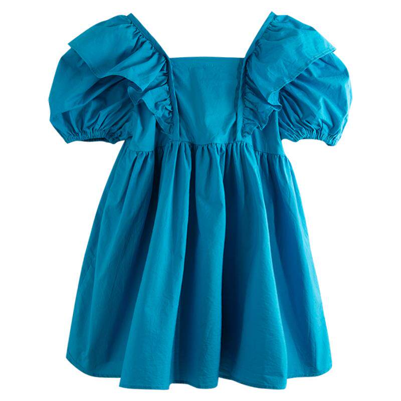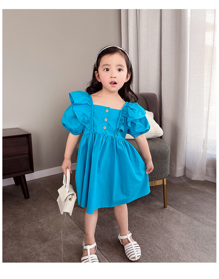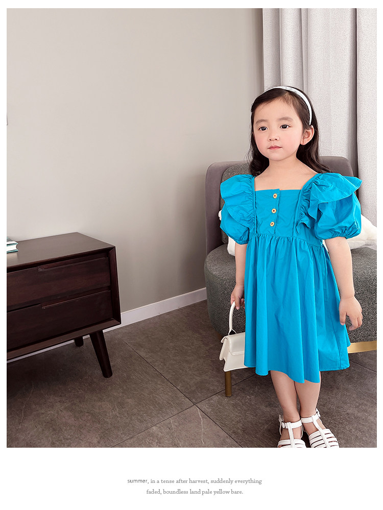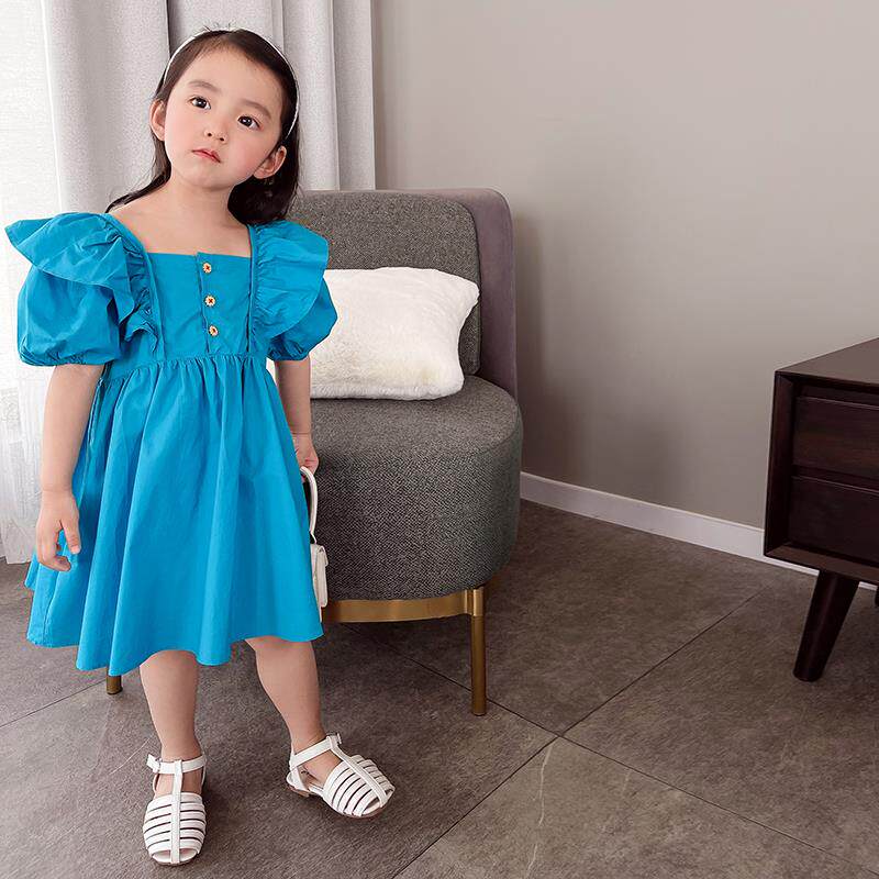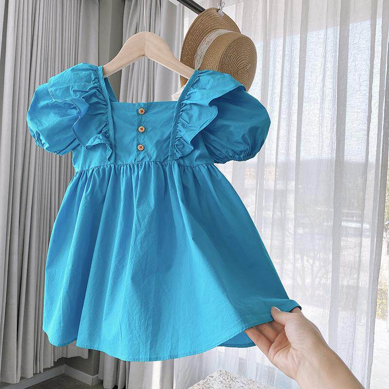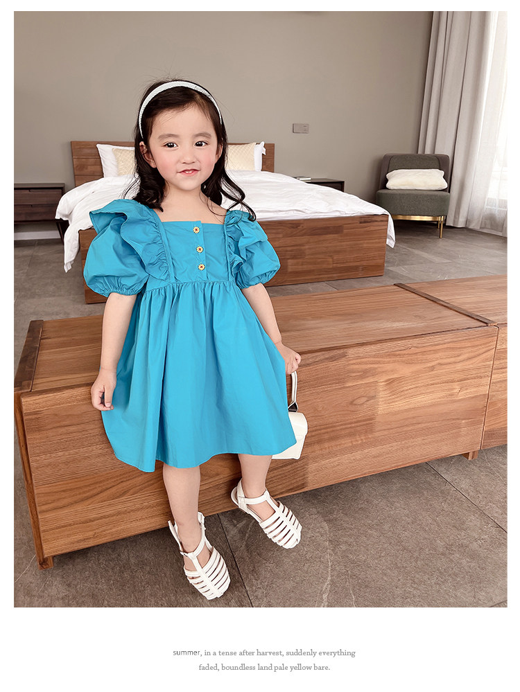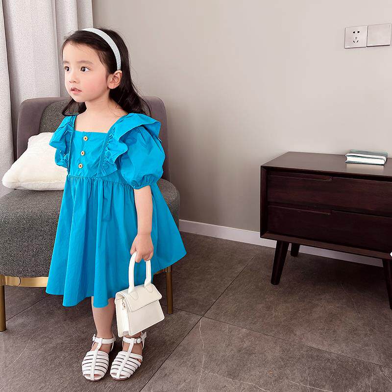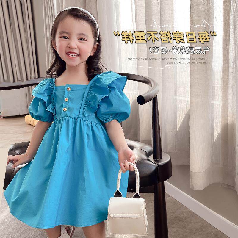 Детское платье с коротким рукавом для девочек, наряд маленькой принцессы, юбка, в корейском стиле, коллекция 2023, в западном стиле, рукава фонарики