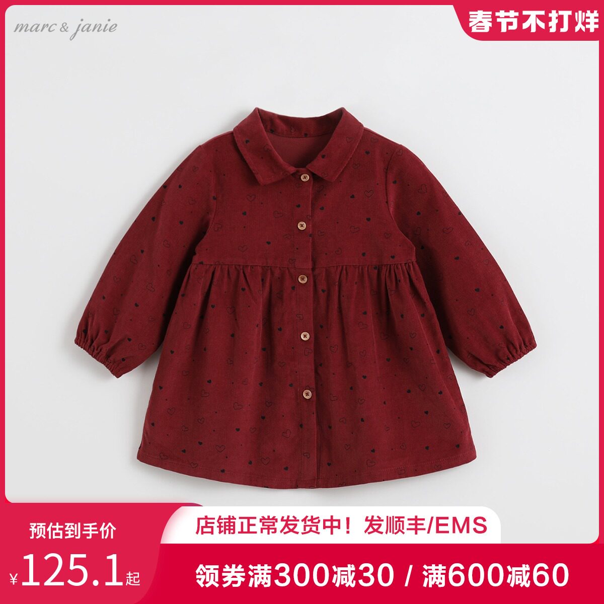 [Канун Нового года] Марк Дженни Спринг Полное издание Love Printing Cordy Velvers Girl Dress 213033