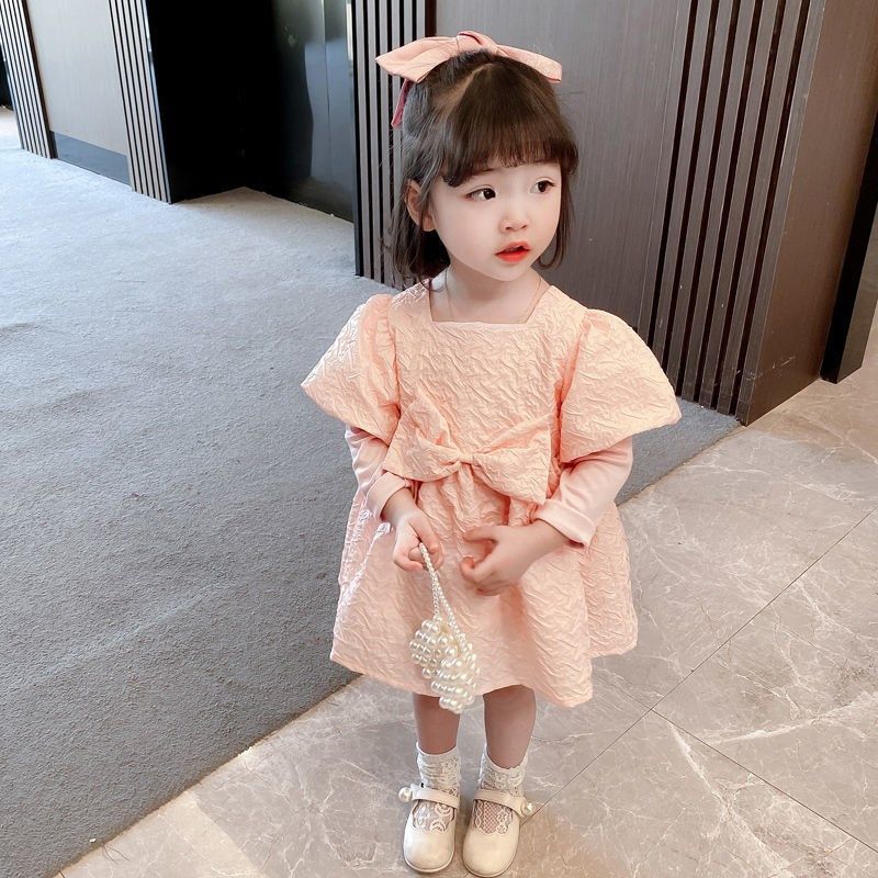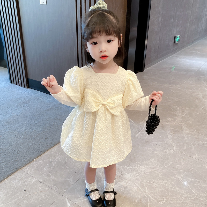 Платье, модная юбка для девочек, наряд маленькой принцессы, осеннее, в западном стиле, коллекция 2023, в корейском стиле, рукава фонарики