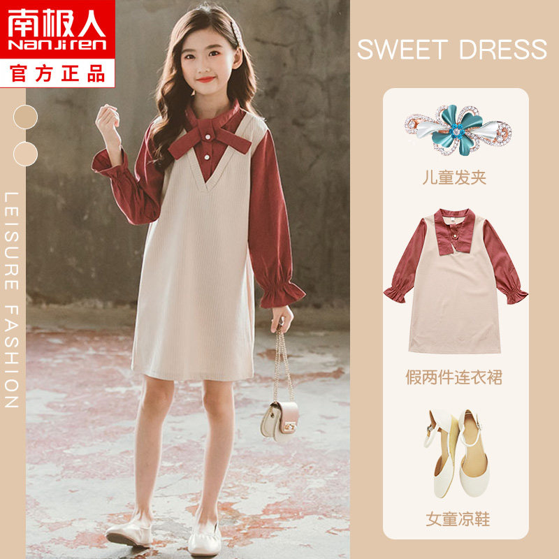 Платье, осенняя юбка, детский лонгслив, наряд маленькой принцессы, в корейском стиле, подходит для подростков, в западном стиле, детская одежда