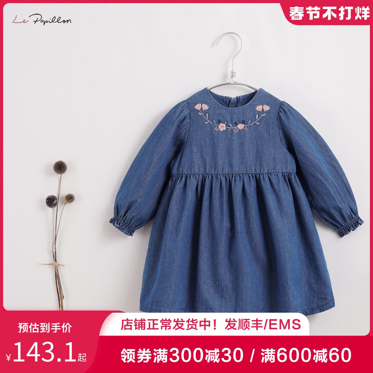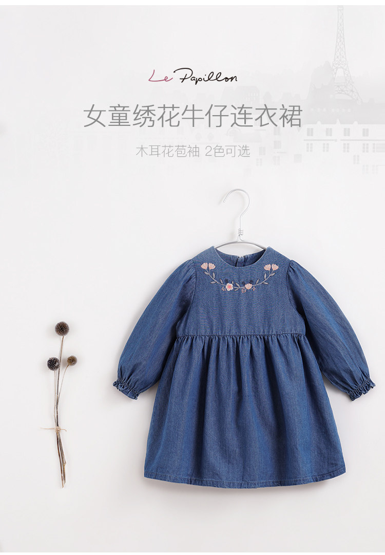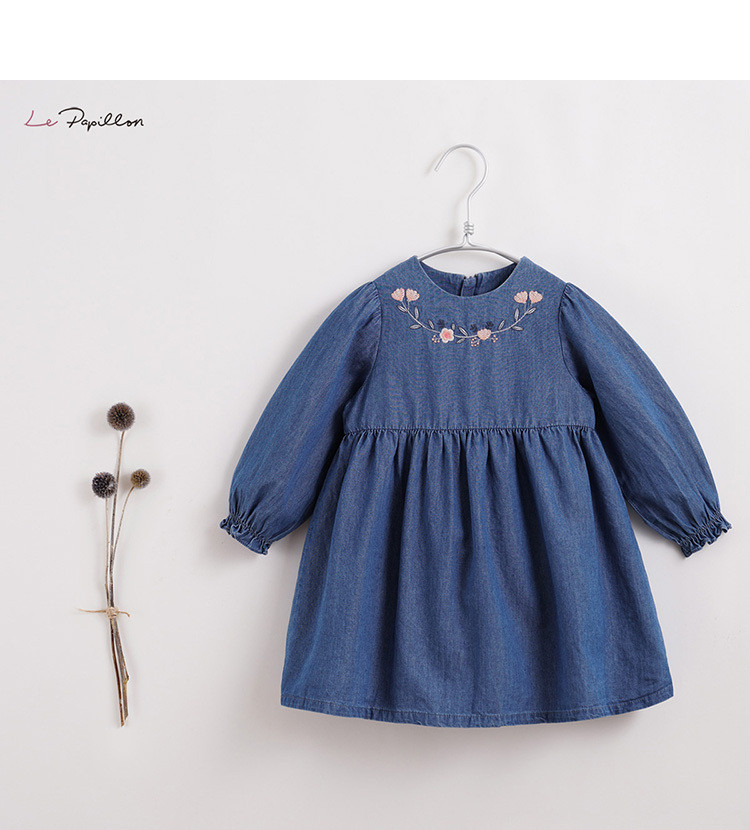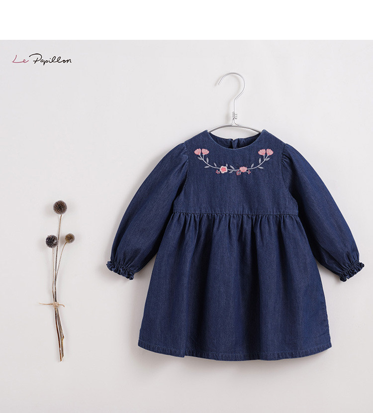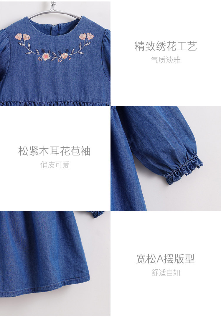 [Марк Дженни Луфу сериал] Детское осеннее платье девушки, вышитое джинсовое платье 212968