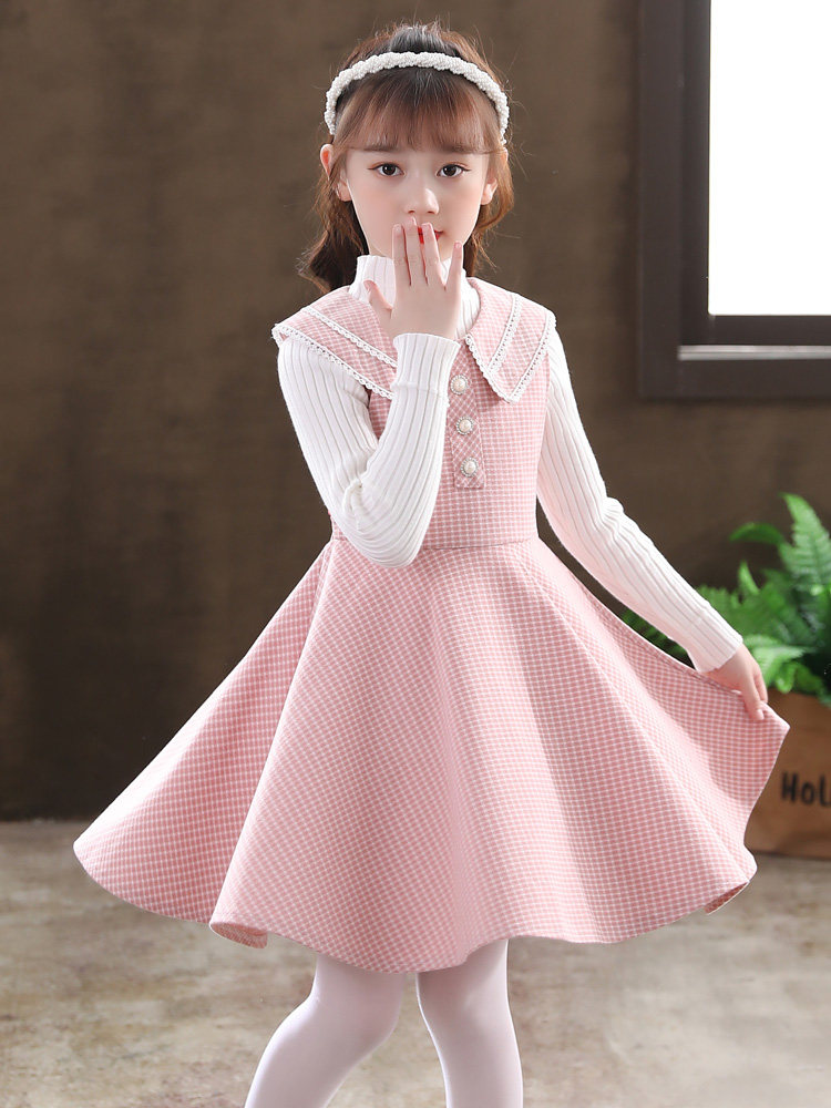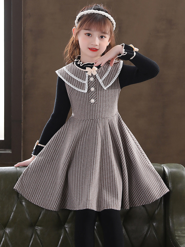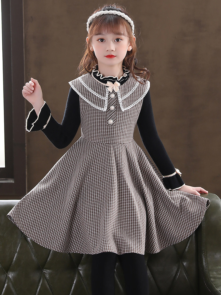 Детский осенний демисезонный комплект, шерстяной наряд маленькой принцессы, платье без рукавов, в западном стиле