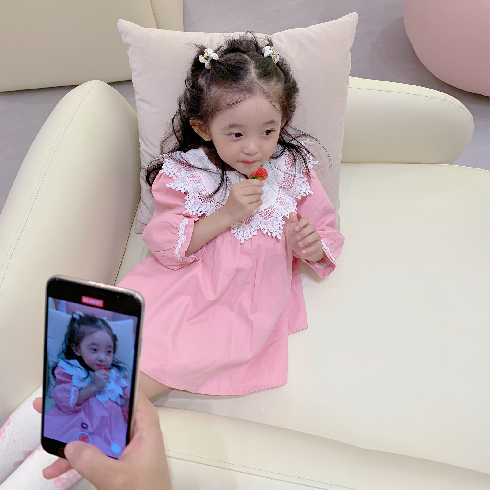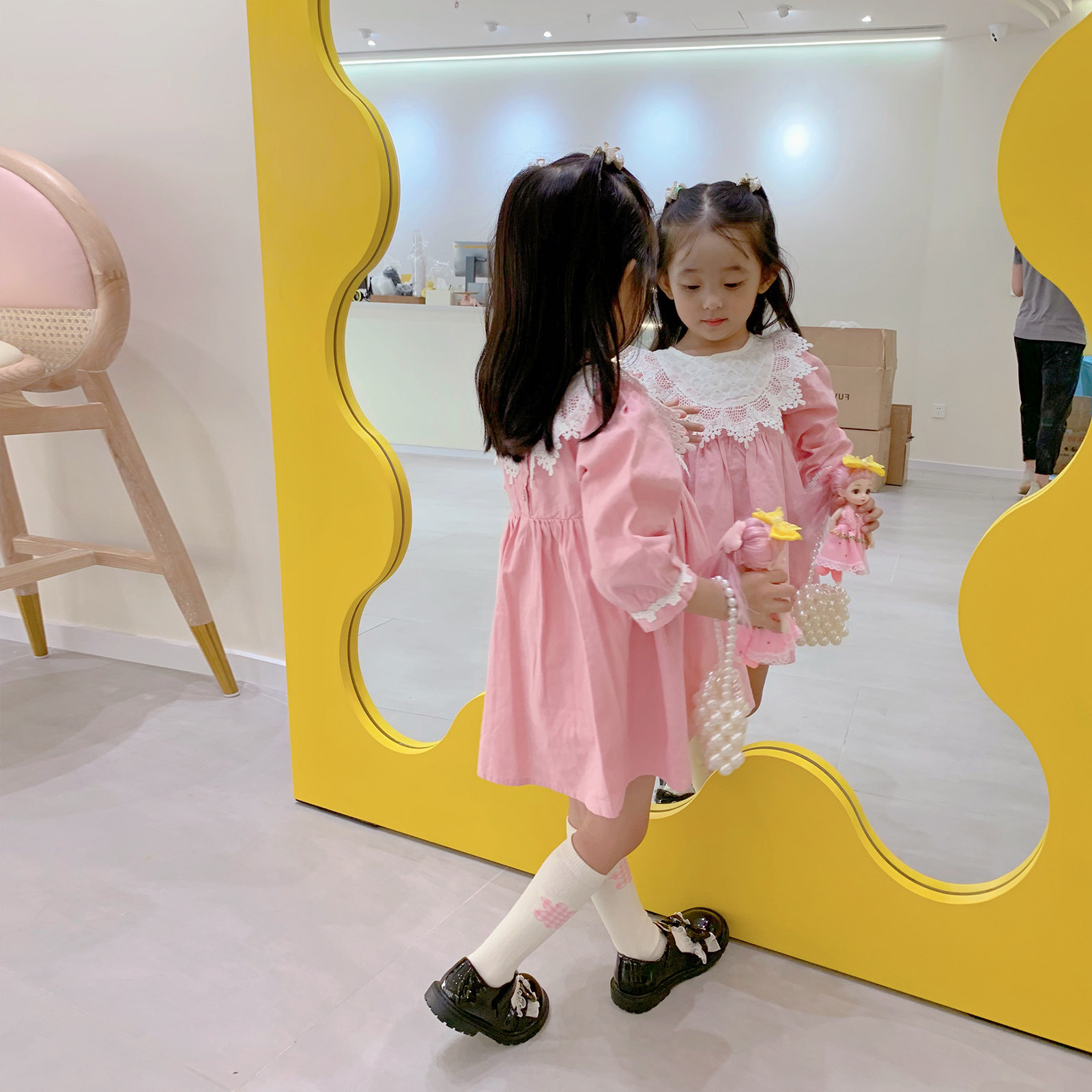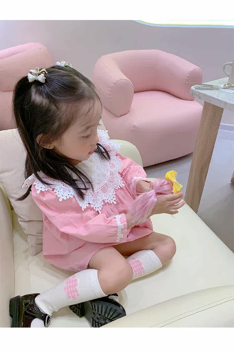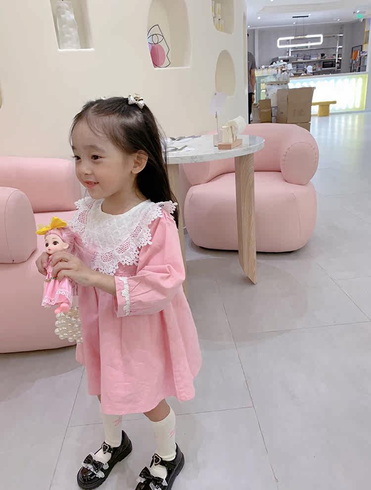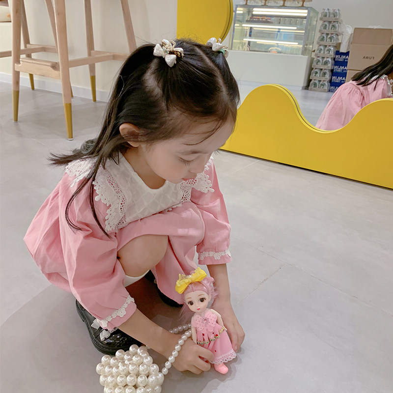 Милая кукла, платье, лонгслив, розовая тонкая демисезонная рубашка, французский стиль