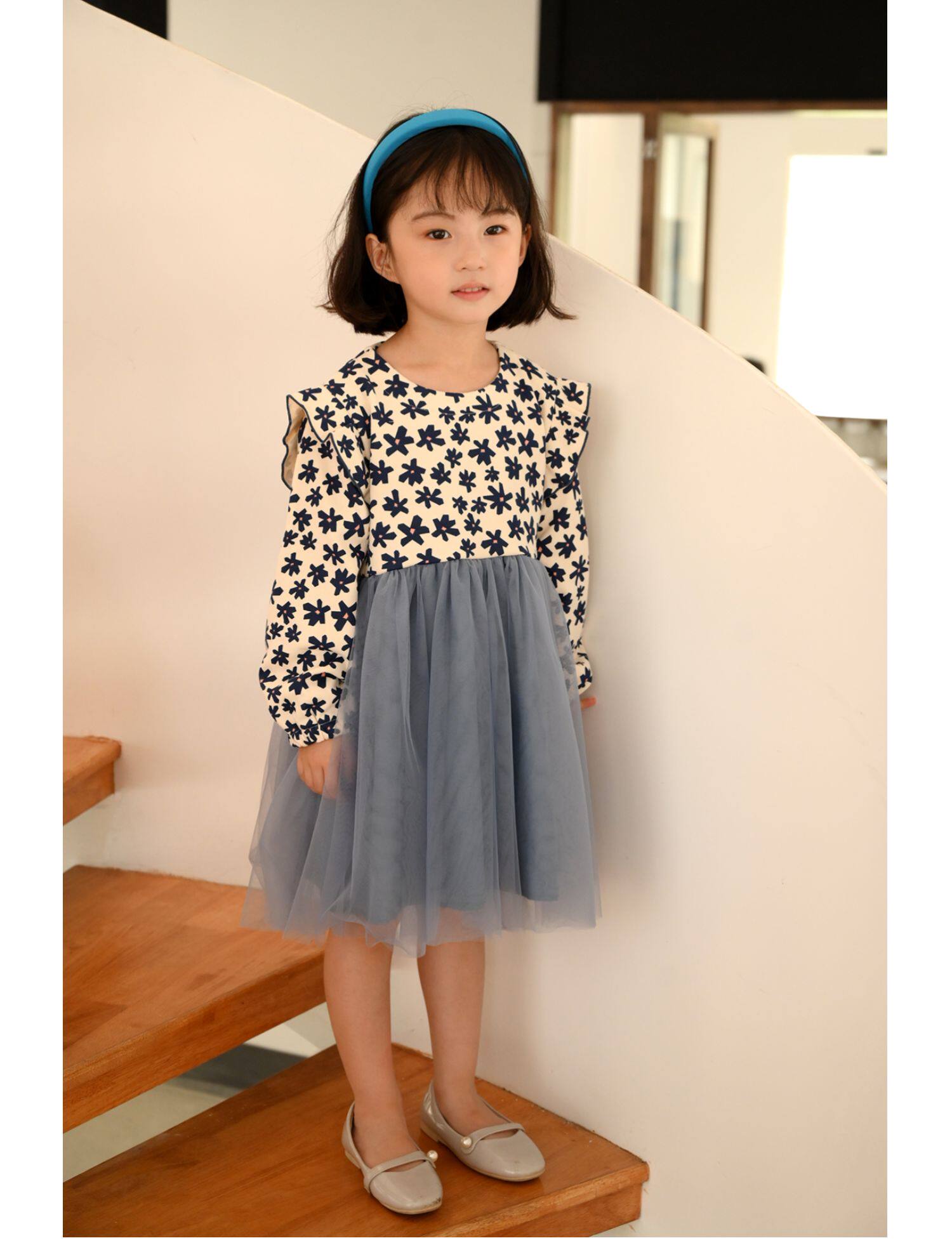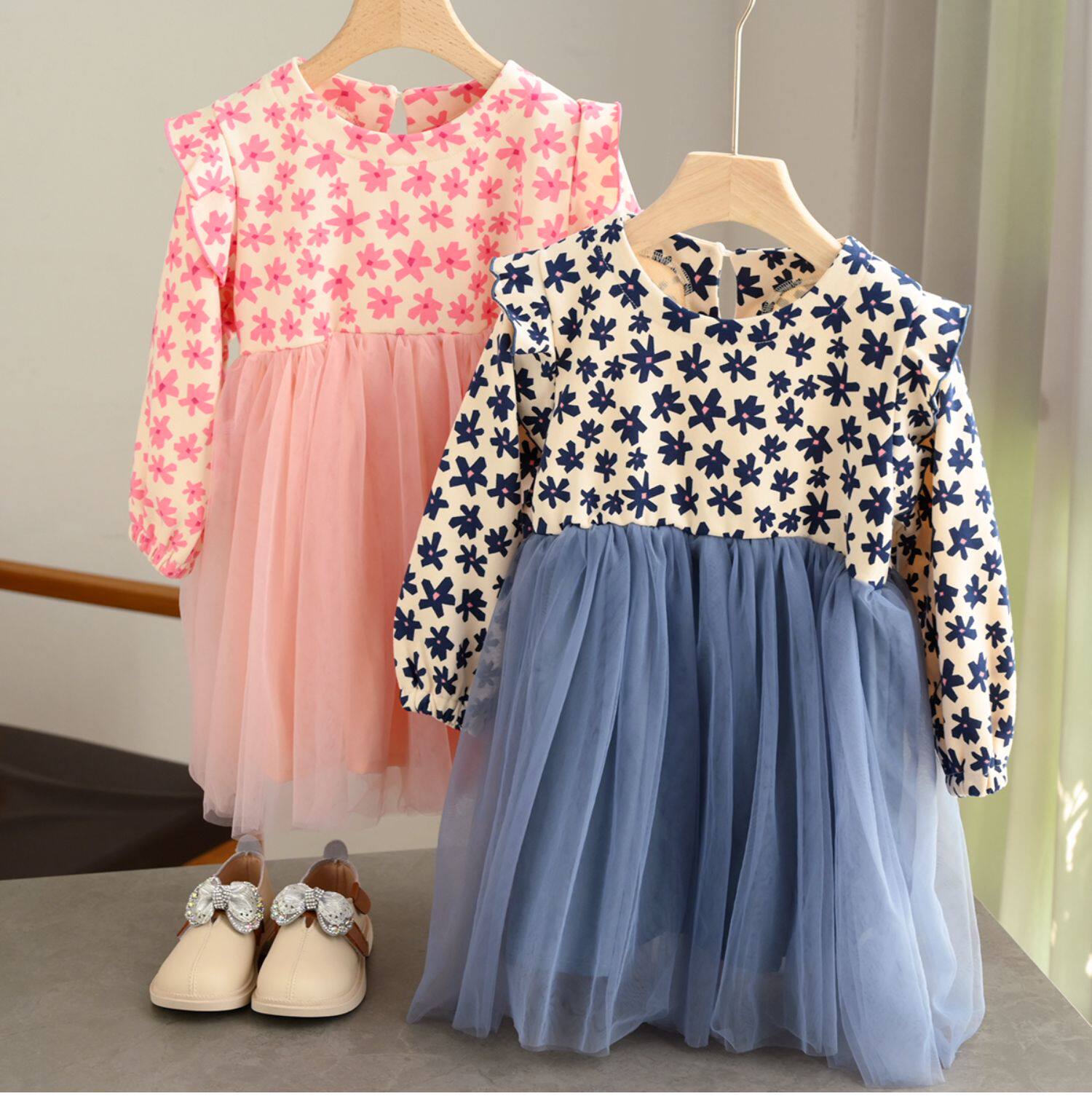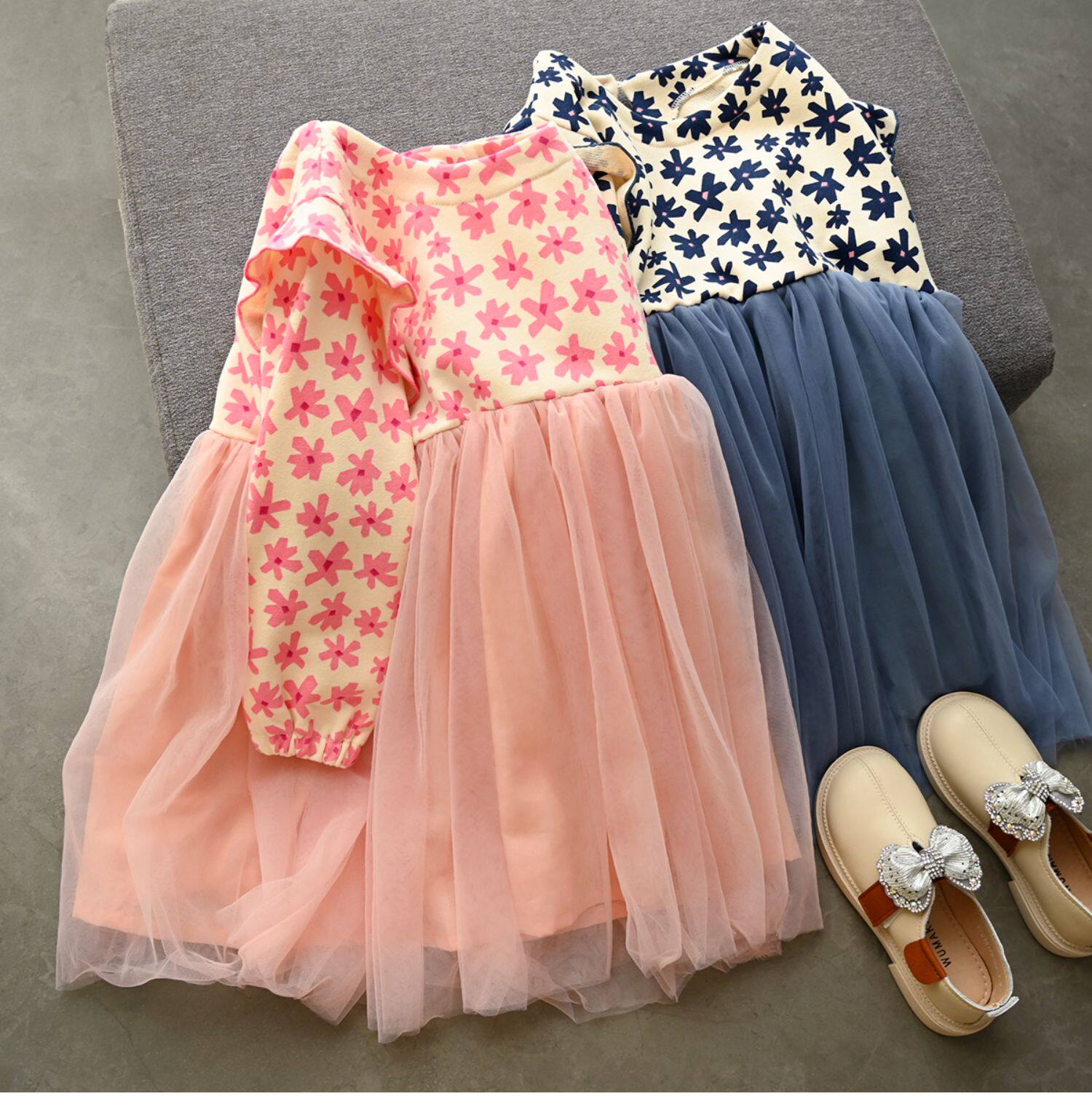 Наряд маленькой принцессы, платье, осенний лонгслив, в цветочек, подходит для подростков, детская одежда