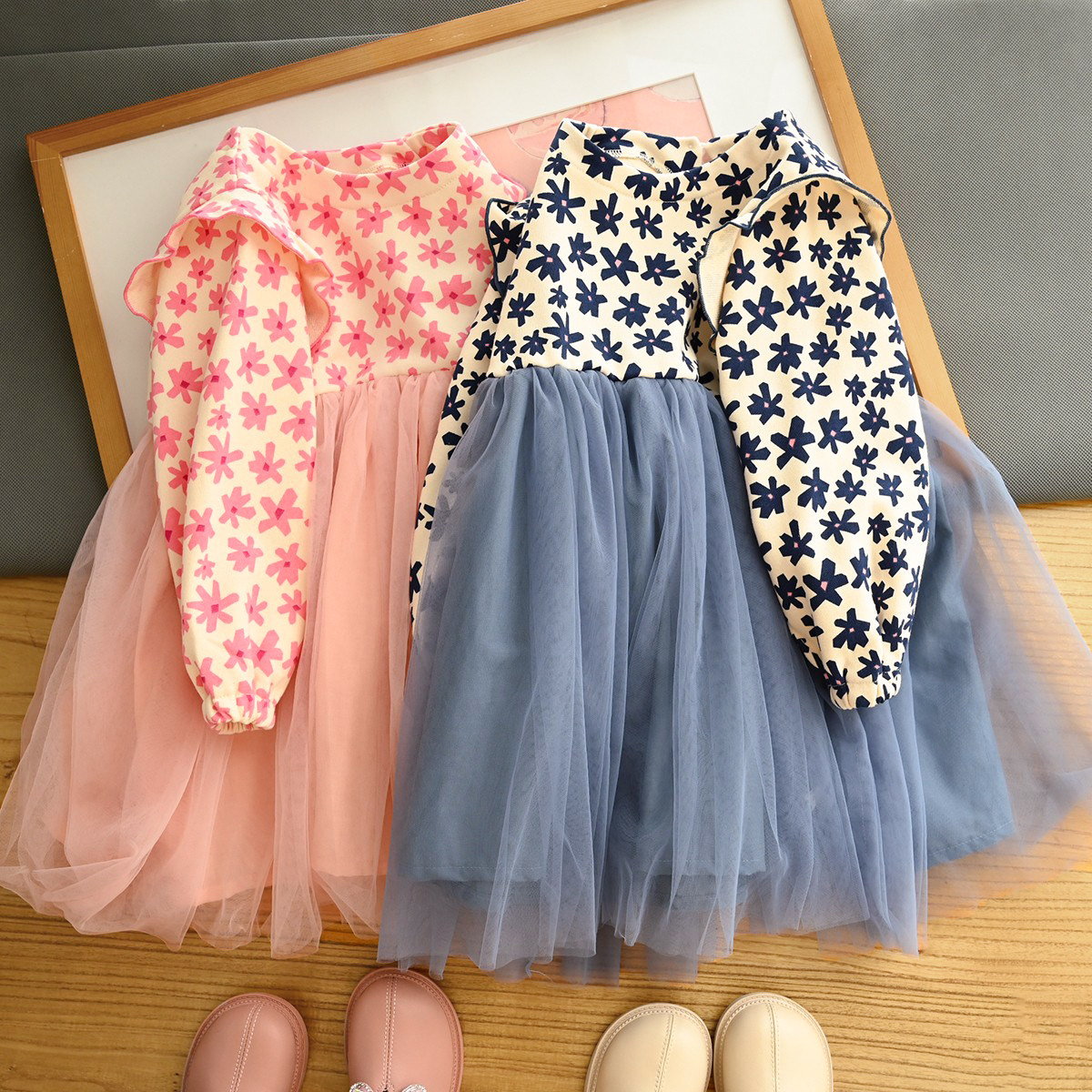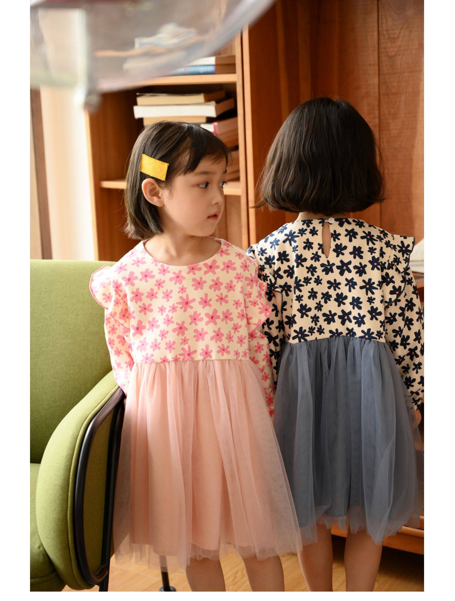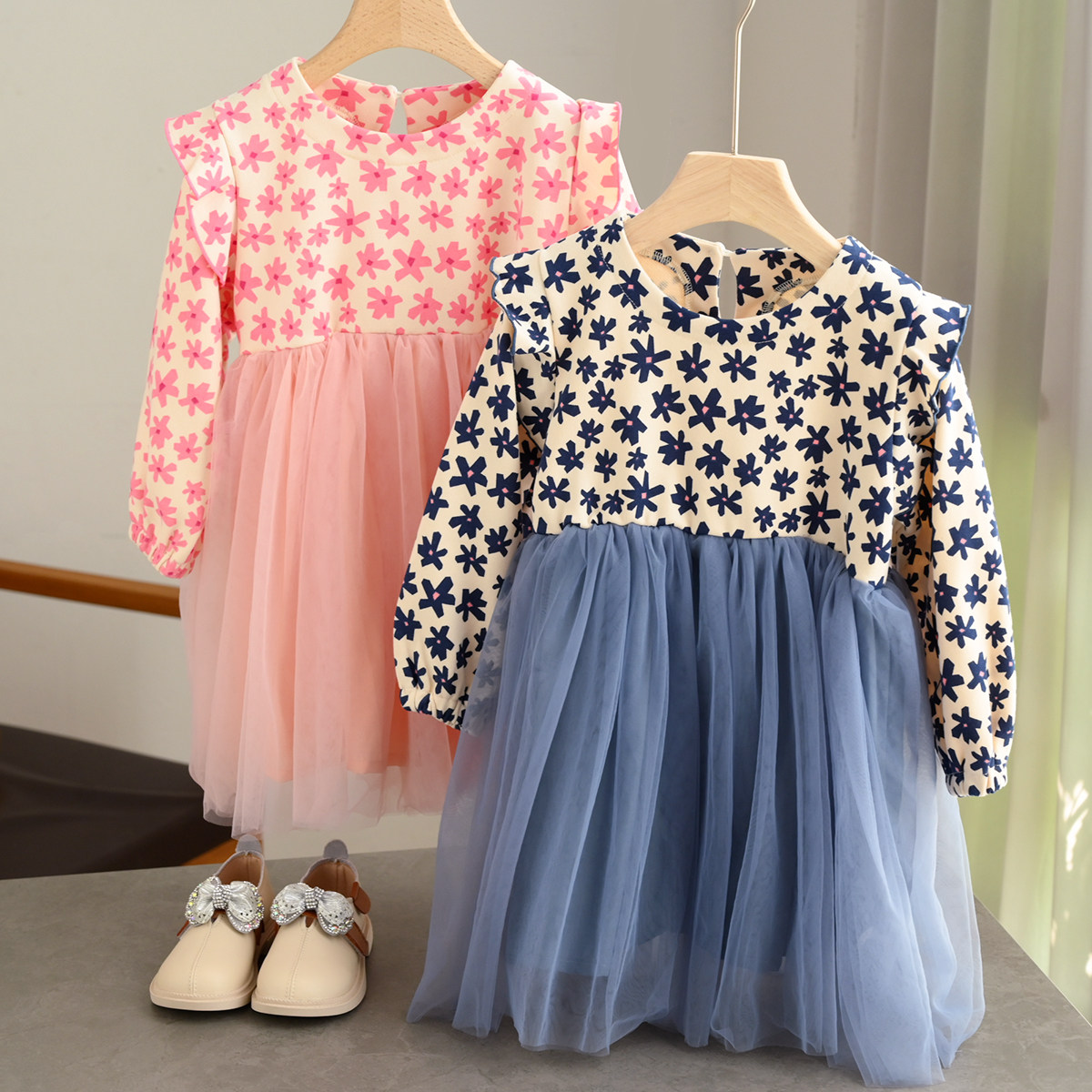 Наряд маленькой принцессы, платье, осенний лонгслив, в цветочек, подходит для подростков, детская одежда