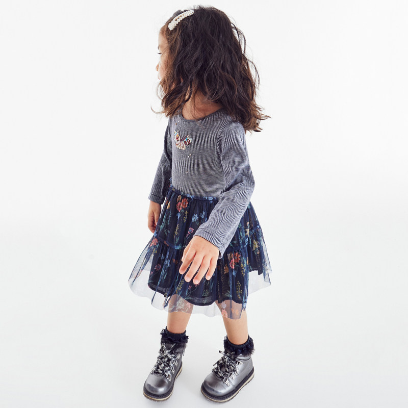 Лонгслив, осенняя юбка на девочку, комфортный наряд маленькой принцессы, в западном стиле, с вышивкой