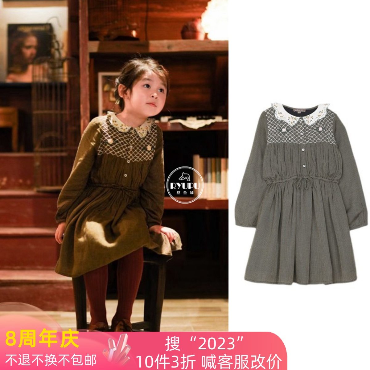 2023 Магазин Ранфу Эмиль Эта FW21 Девушка из вышитого платья Девушка с трехмерной цветочной юбкой детей